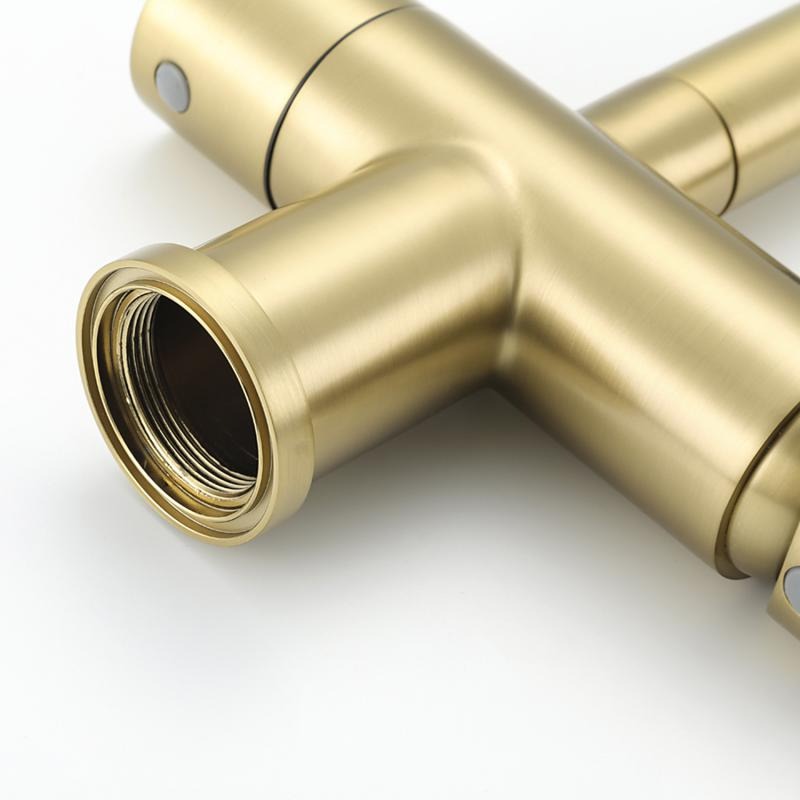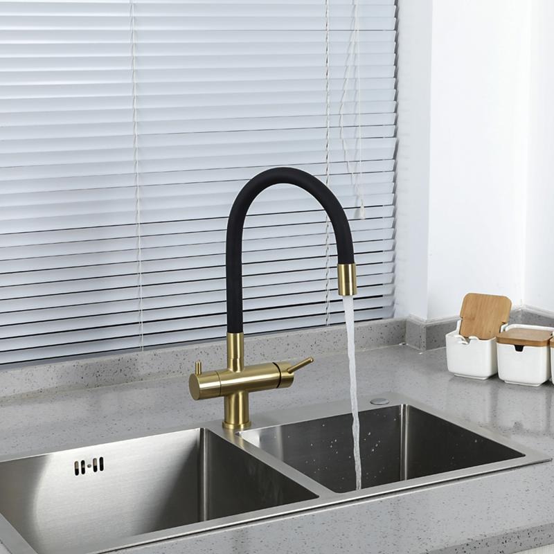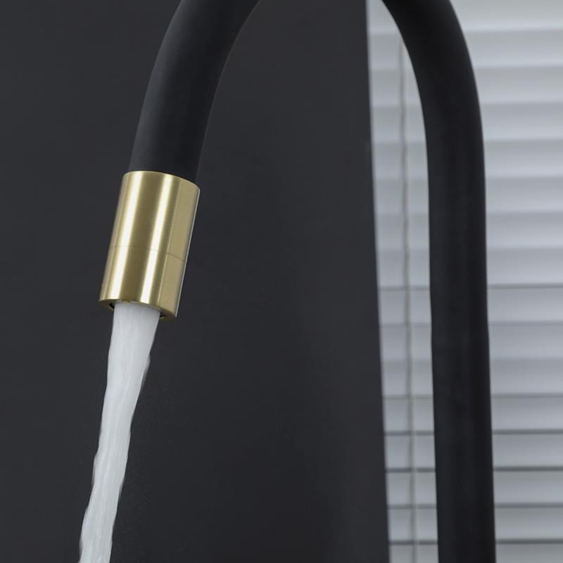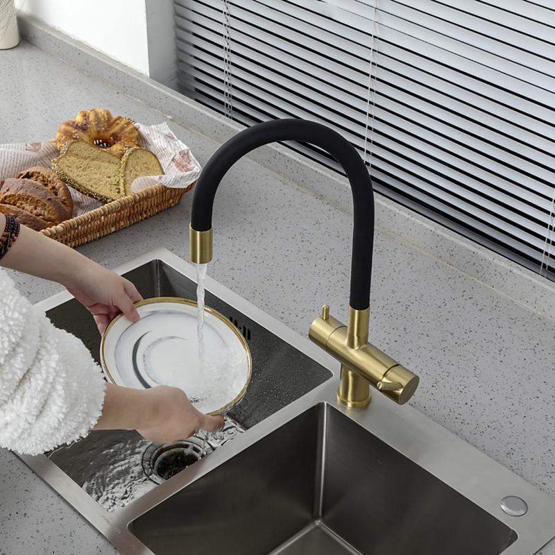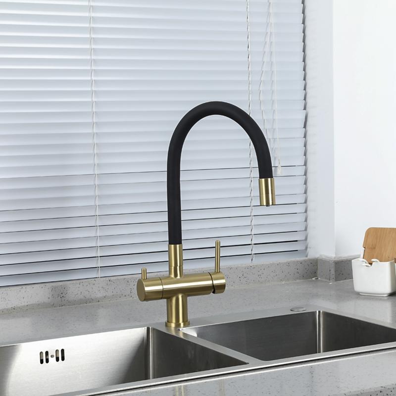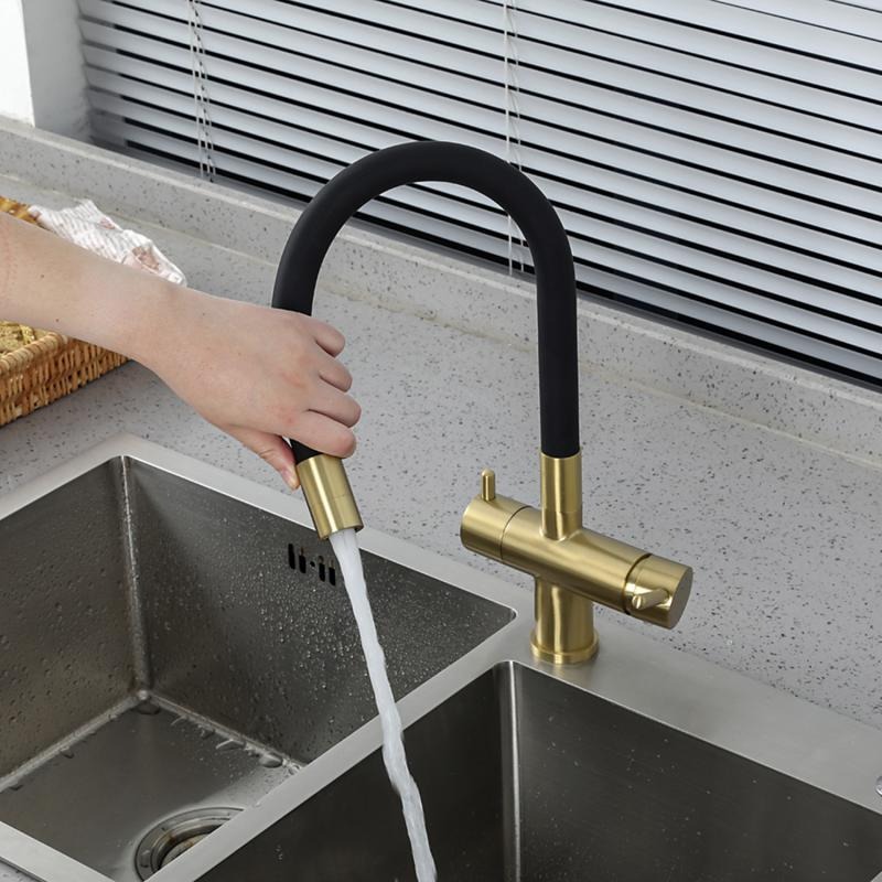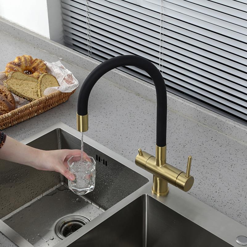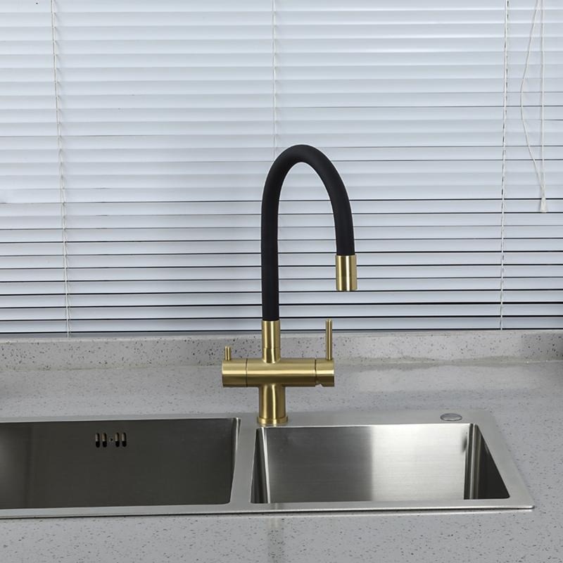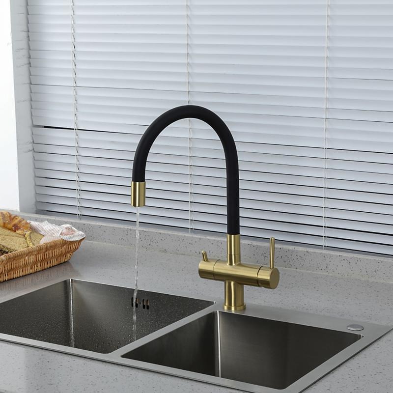 Смеситель для кухни Gappo G4398-33 с гибким изливом и подключением фильтра, материал - латунь, цвет - золото/черный.