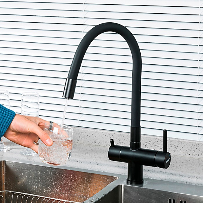 Смеситель для кухни Gappo G4398-36 с гибким изливом и подключением фильтра питьевой воды, материал - латунь/силикон, цвет - черный.