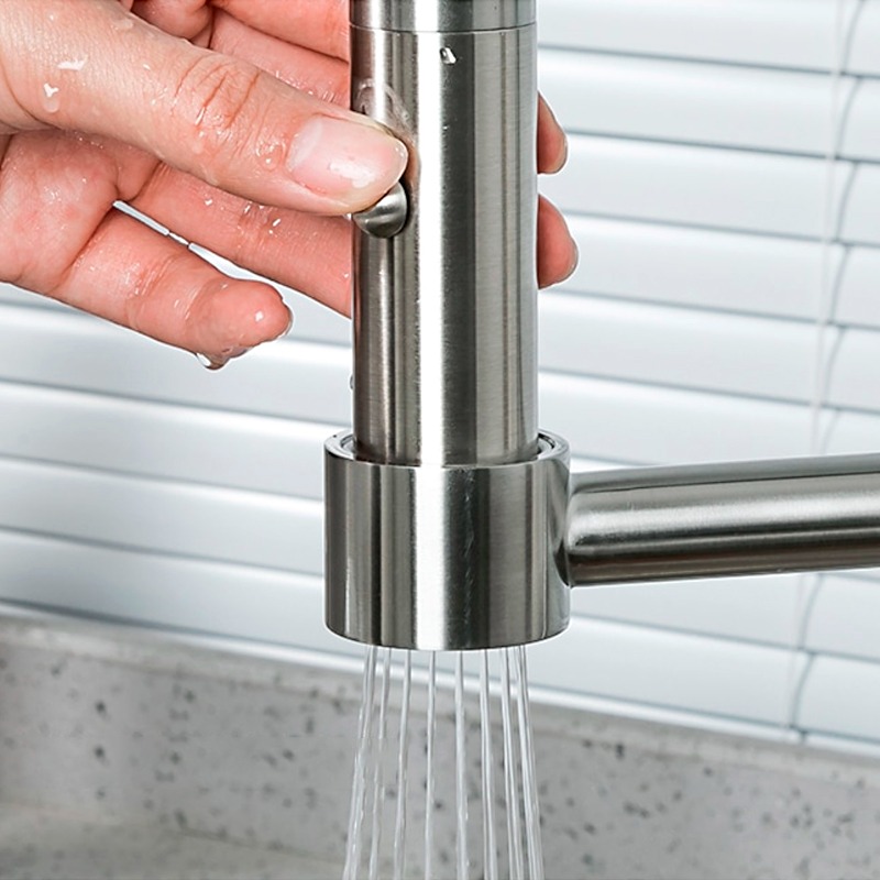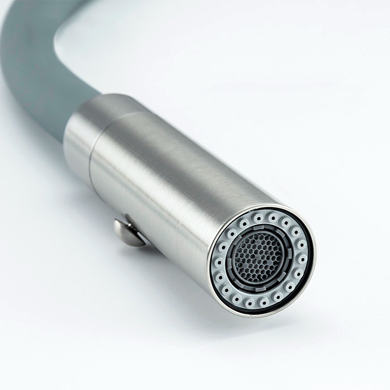 Смеситель для кухни с переключением на душ Gappo G4398-55 обладает красивым дизайном и прочностью. Сделан из латуни. Латунь известна своей устойчивостью к воздействию воды, окислению и ржавению. Гусак сделан из силикона и достается из аэратора. На аэраторе есть кнопка, которая переключает режимы. Излив силиконовый, гнется во все стороны. Он эластичный поэтому не треснет. Очень упростит мытье посуды, овощей и фруктов. Также позволит с легкостью наполнять габаритные емкости и мыть много посуды.