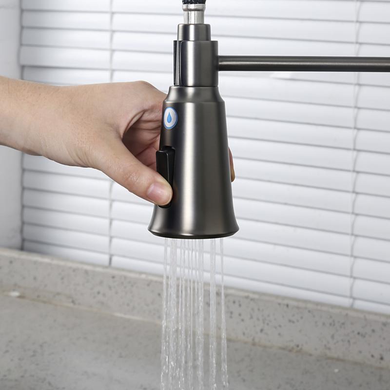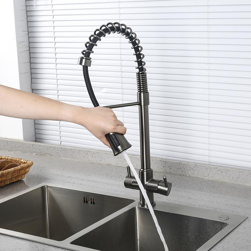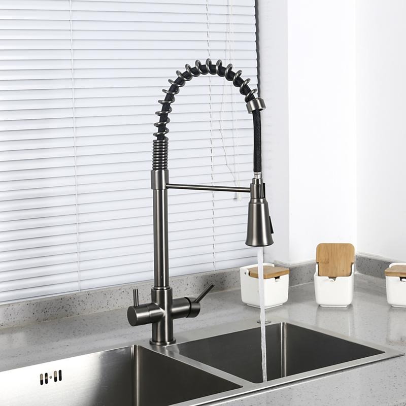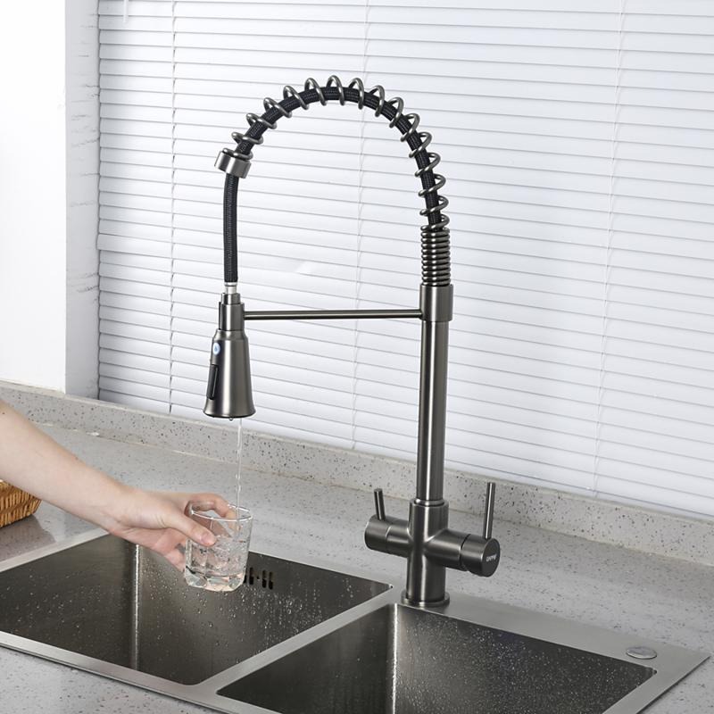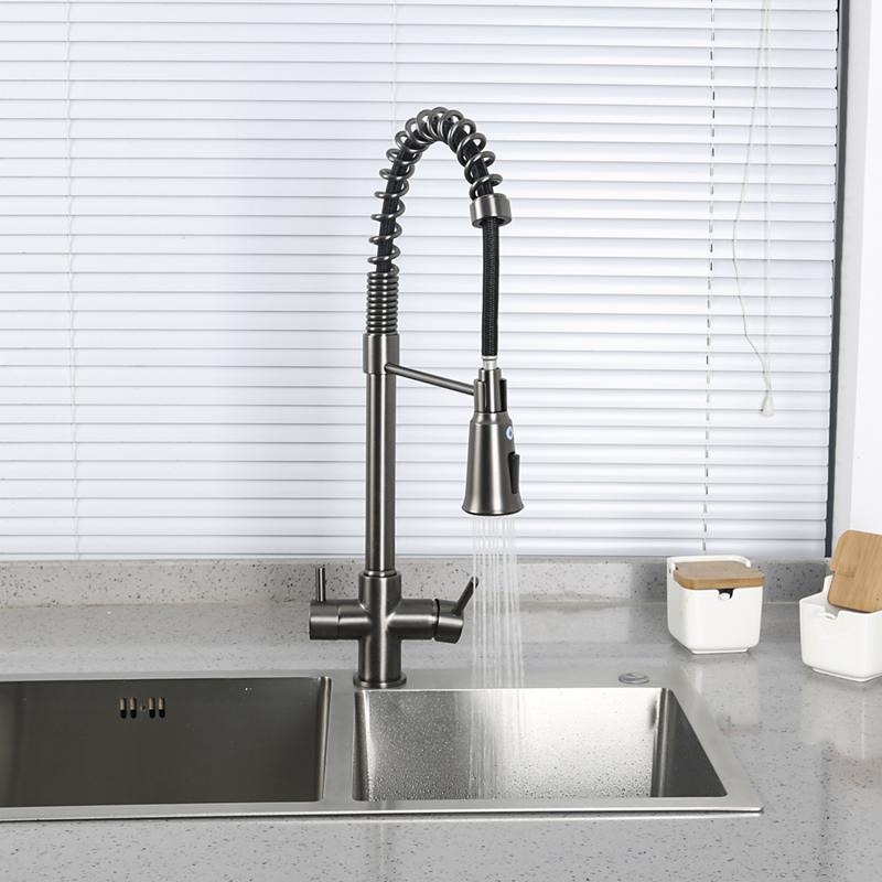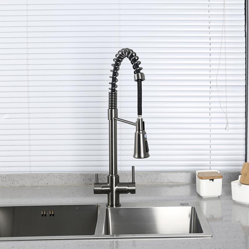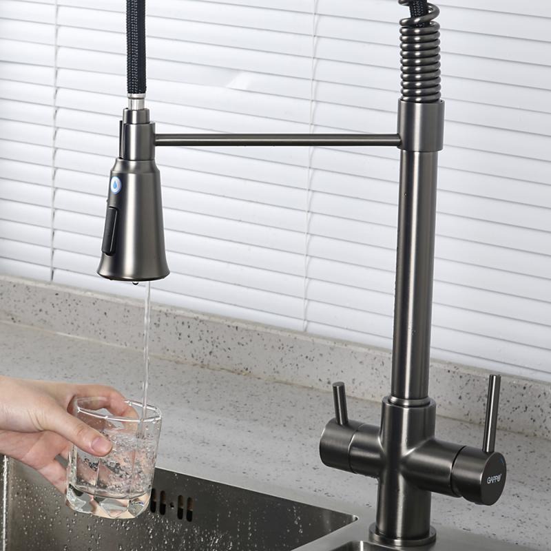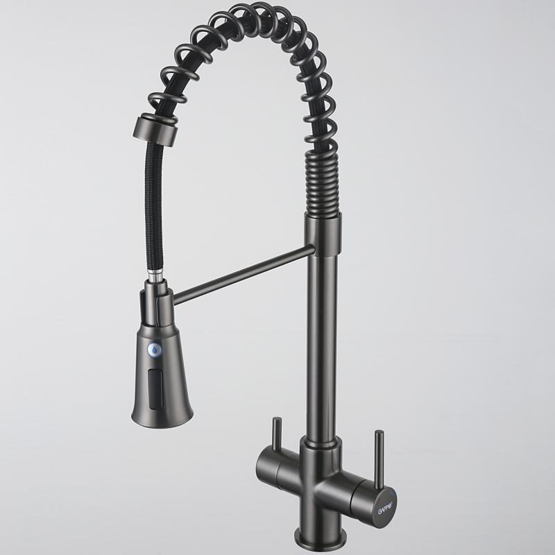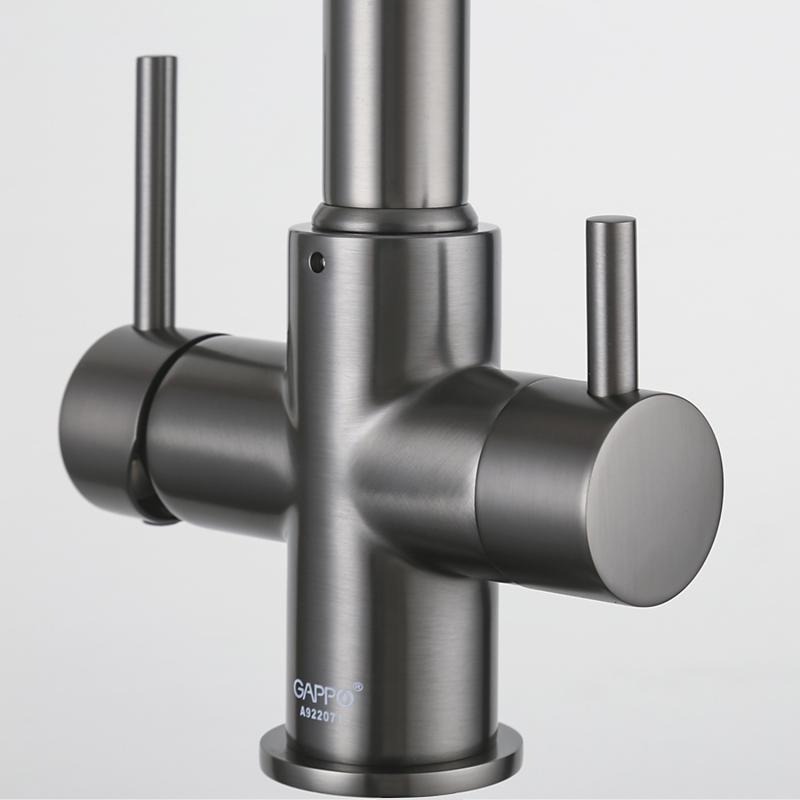 Смеситель для кухни Gappo G4398-69 с гибким изливом и подключением фильтра, материал - латунь, цвет - оружейная сталь.