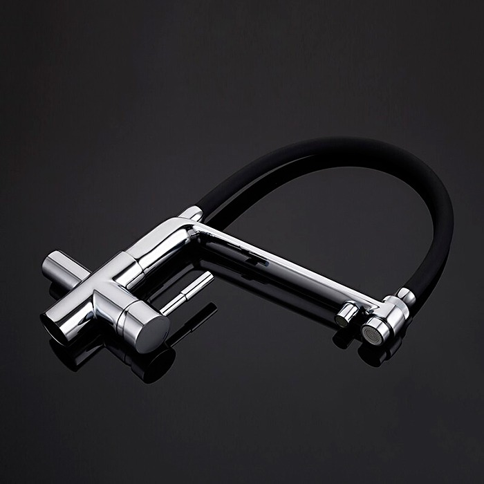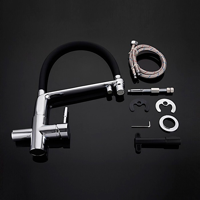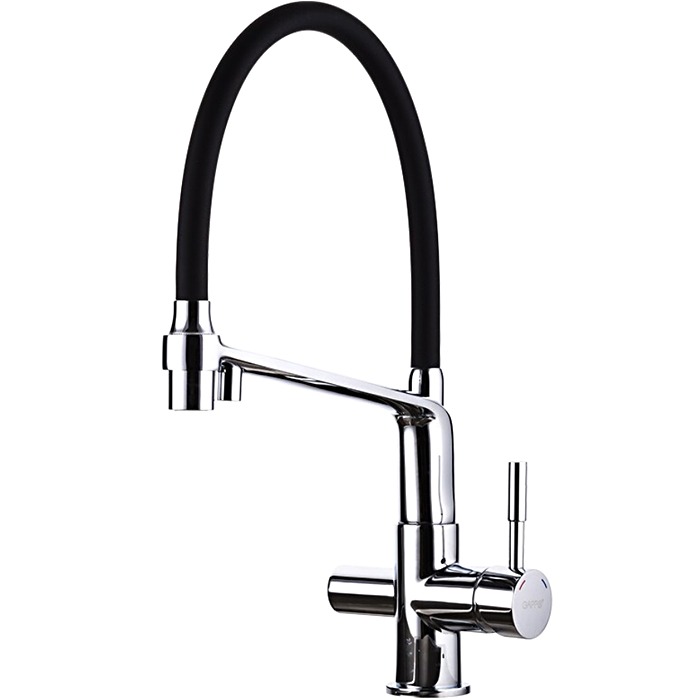Смеситель для кухни Gappo G4398-7 с гибким, поворотным изливом и подключением фильтра питьевой воды , материал - латунь, цвет - черный/хром.