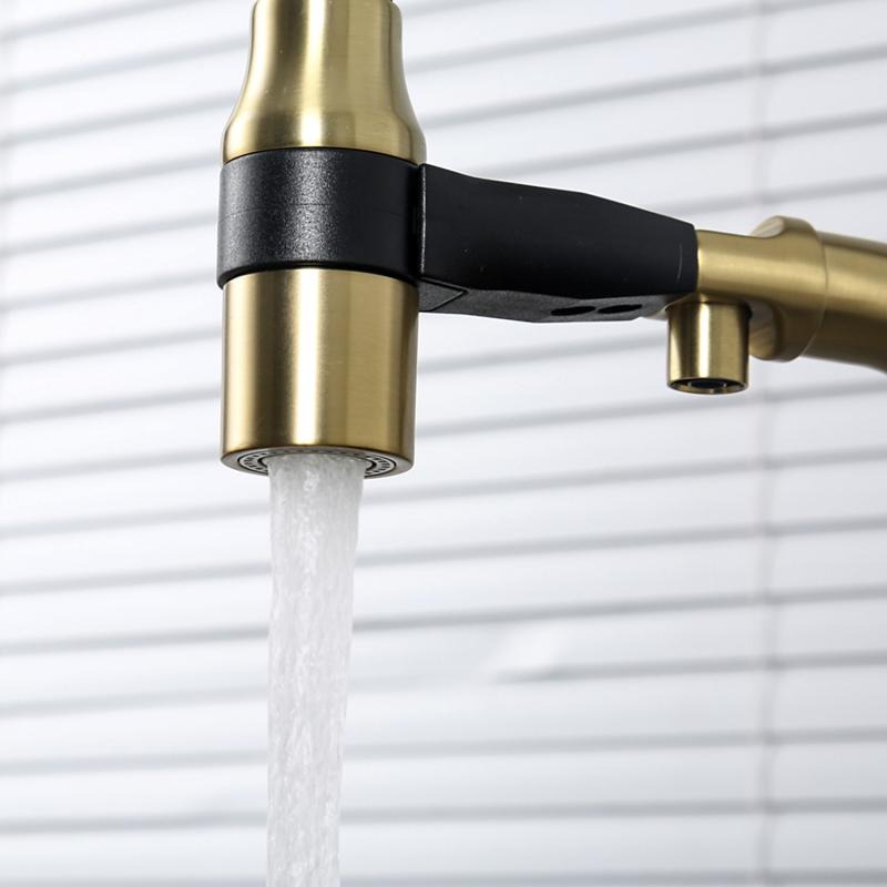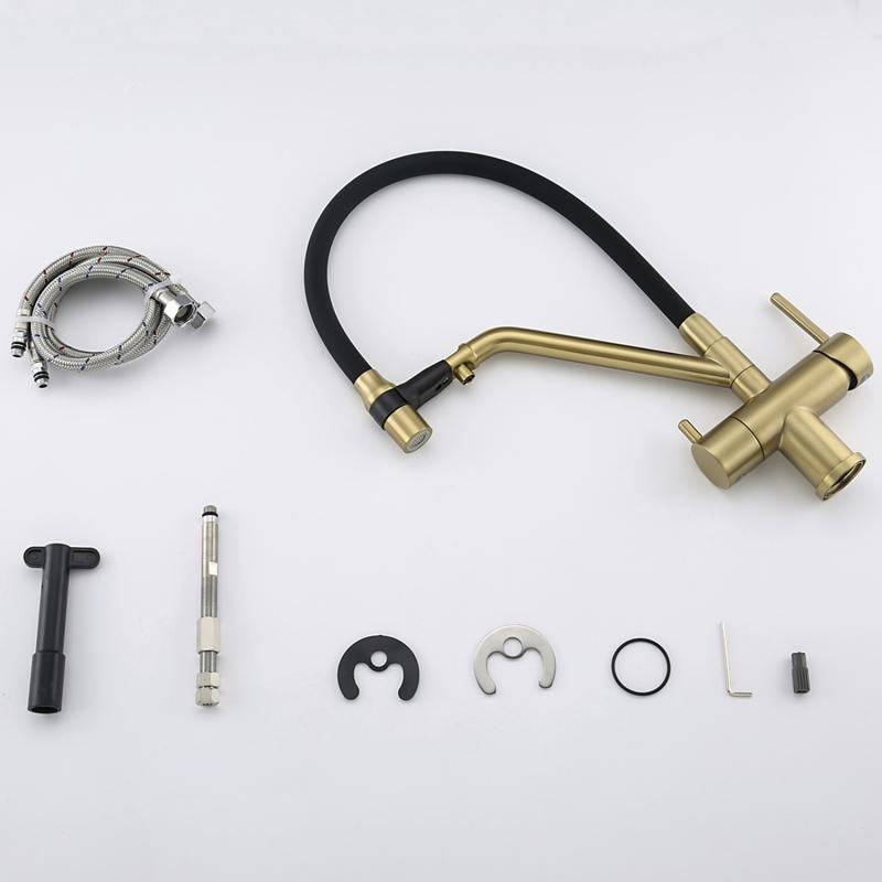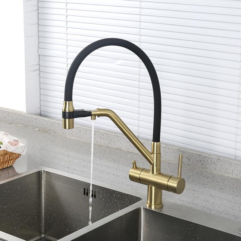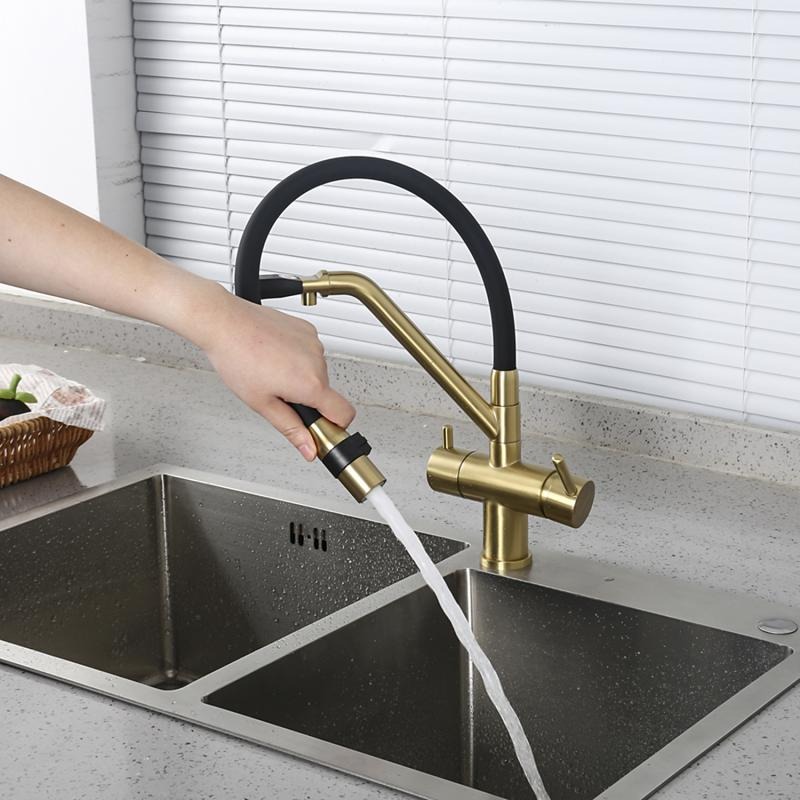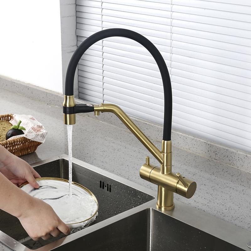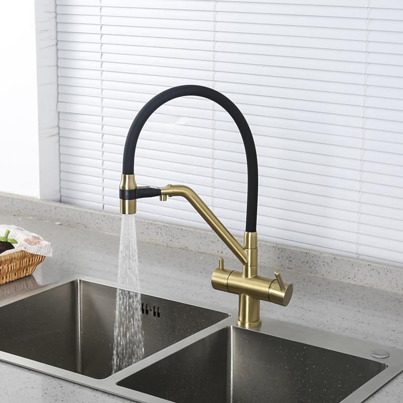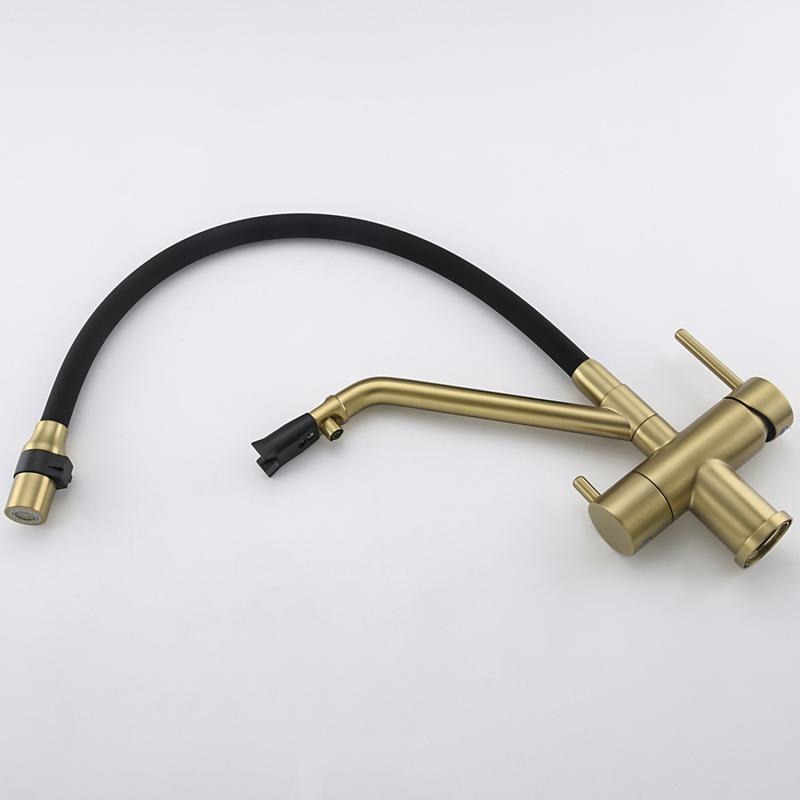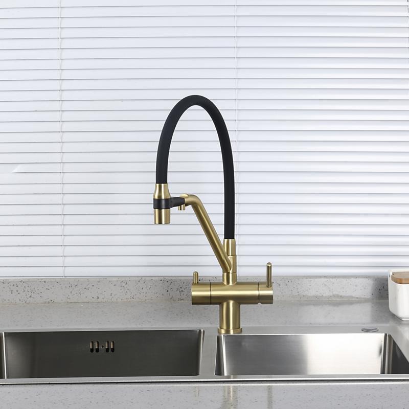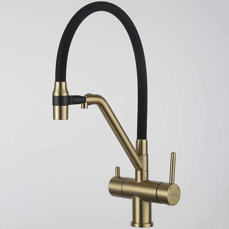 Смеситель для кухни Gappo G4398-83 с гибким изливом и подключением фильтра, материал - латунь, цвет - золото/черный.