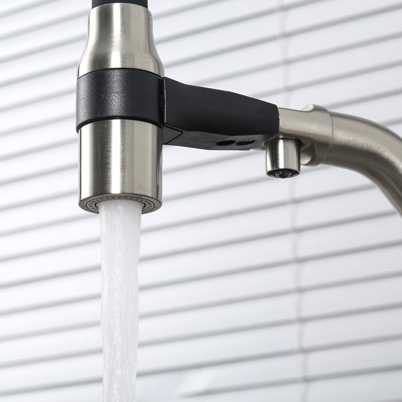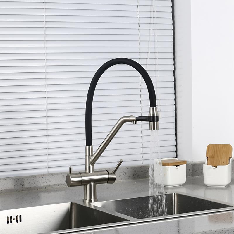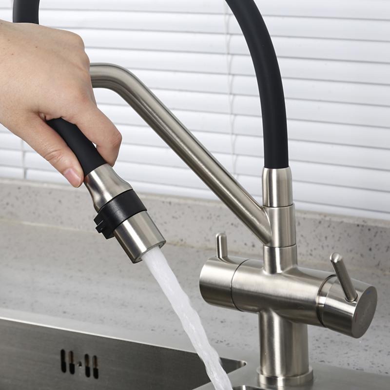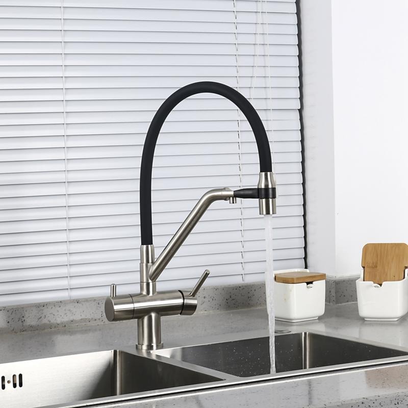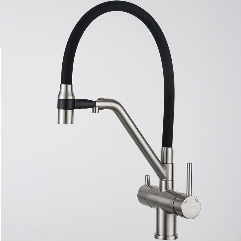 Смеситель для кухни Gappo G4398-85 с гибким изливом и подключением фильтра, материал - латунь, цвет - сатин/черный.