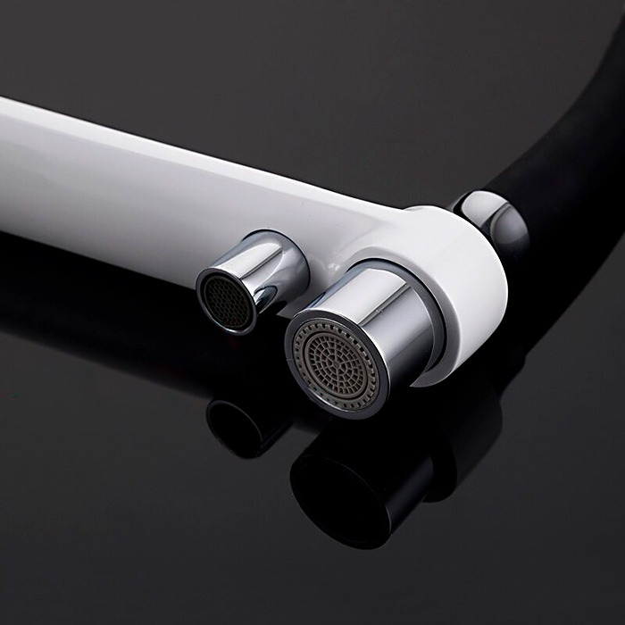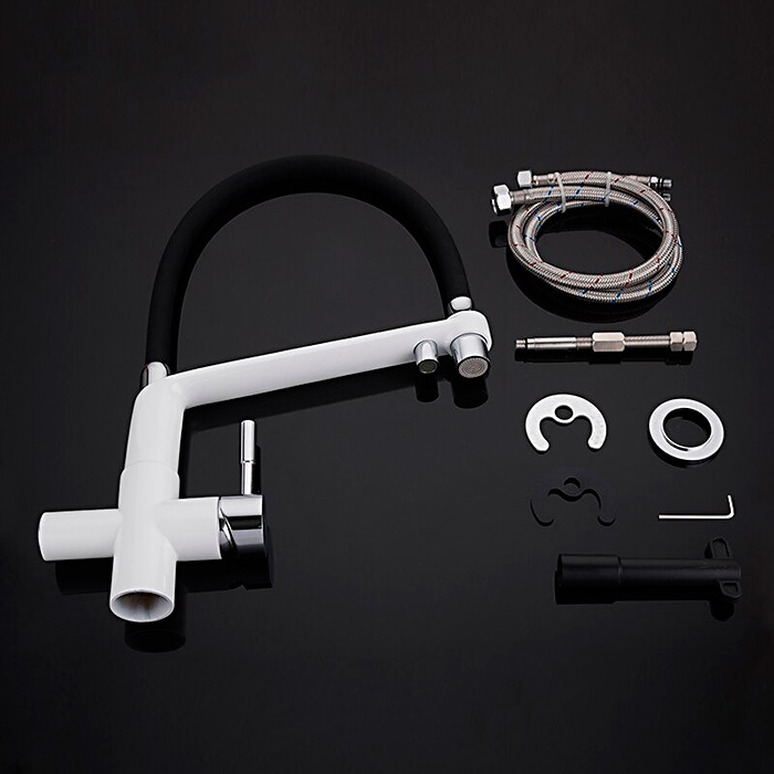 Смеситель для кухни Gappo G4398-9 с гибким, поворотным изливом и подключением фильтра питьевой воды , материал - латунь, цвет - белый/черный/хром.