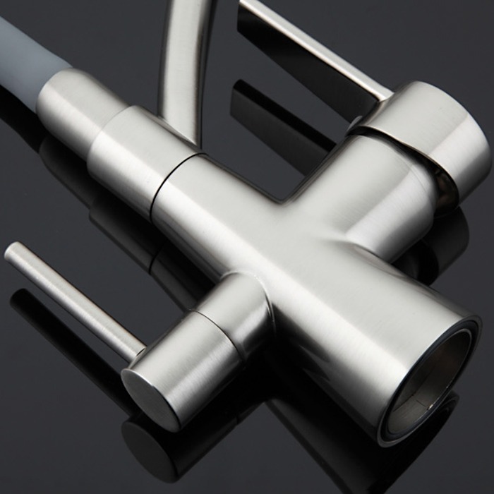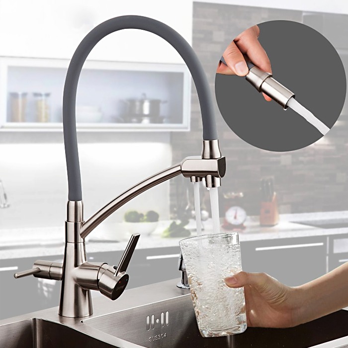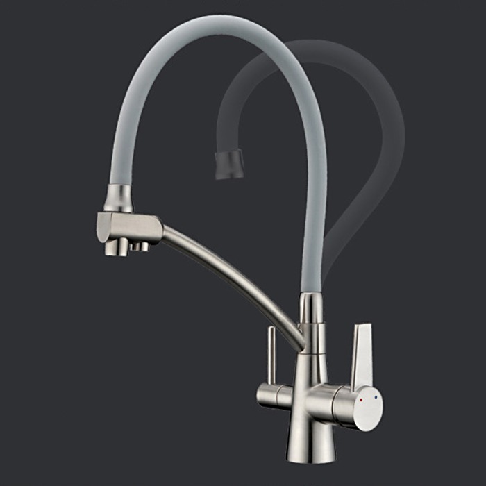 Смеситель для кухни Gappo G4398 с гибким, поворотным изливом и подключением фильтра питьевой воды , материал - латунь, цвет - серый/сатин.