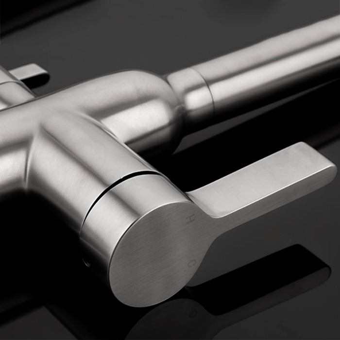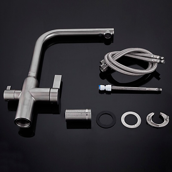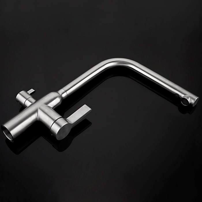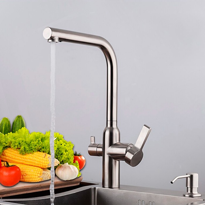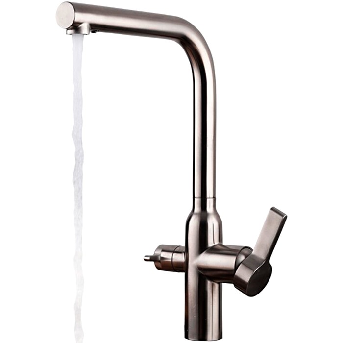 Смеситель для кухни Gappo G4399-4 с поворотным изливом и подключением фильтра питьевой воды , материал - нержавеющая сталь, цвет - сатин.