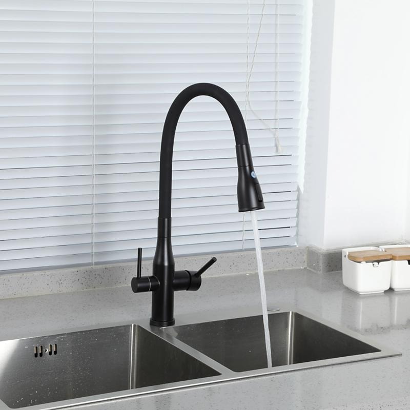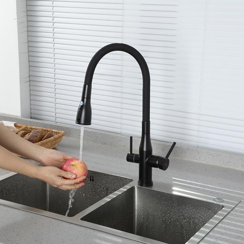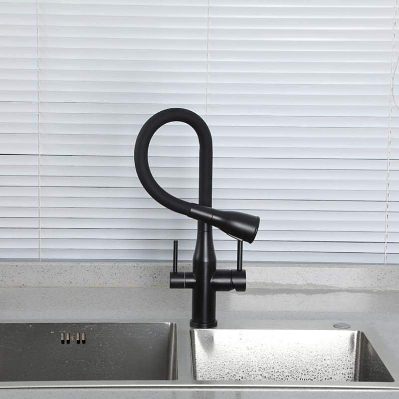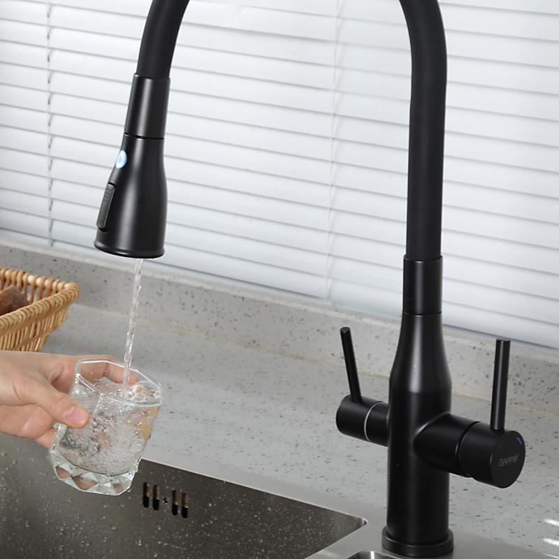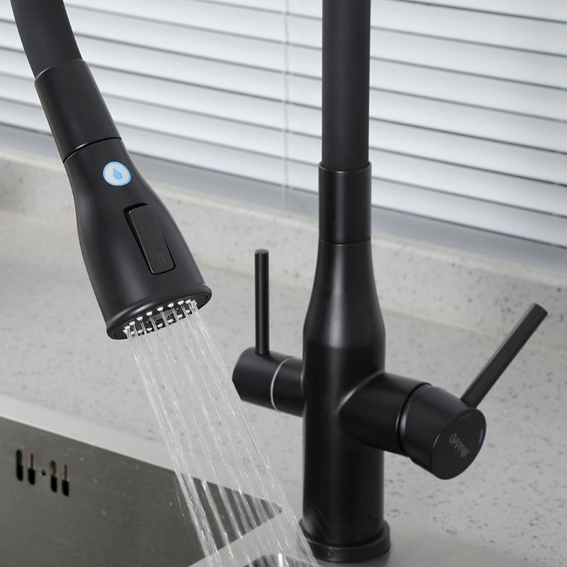 Смеситель для кухни Gappo G4399-66 с гибким изливом и подключением фильтра, материал - латунь, цвет - черный.
