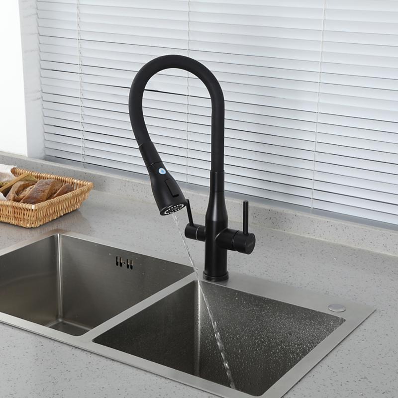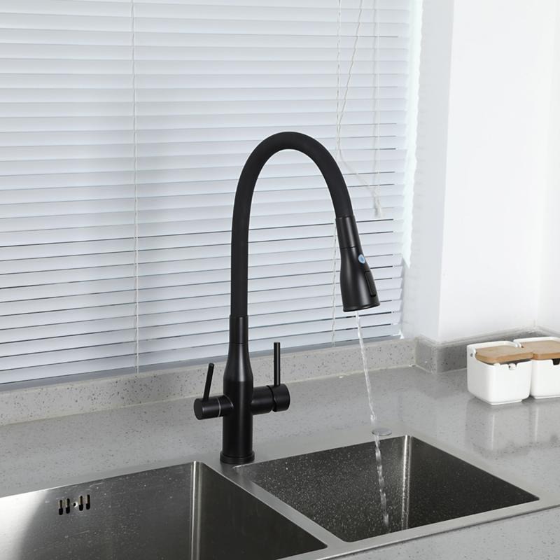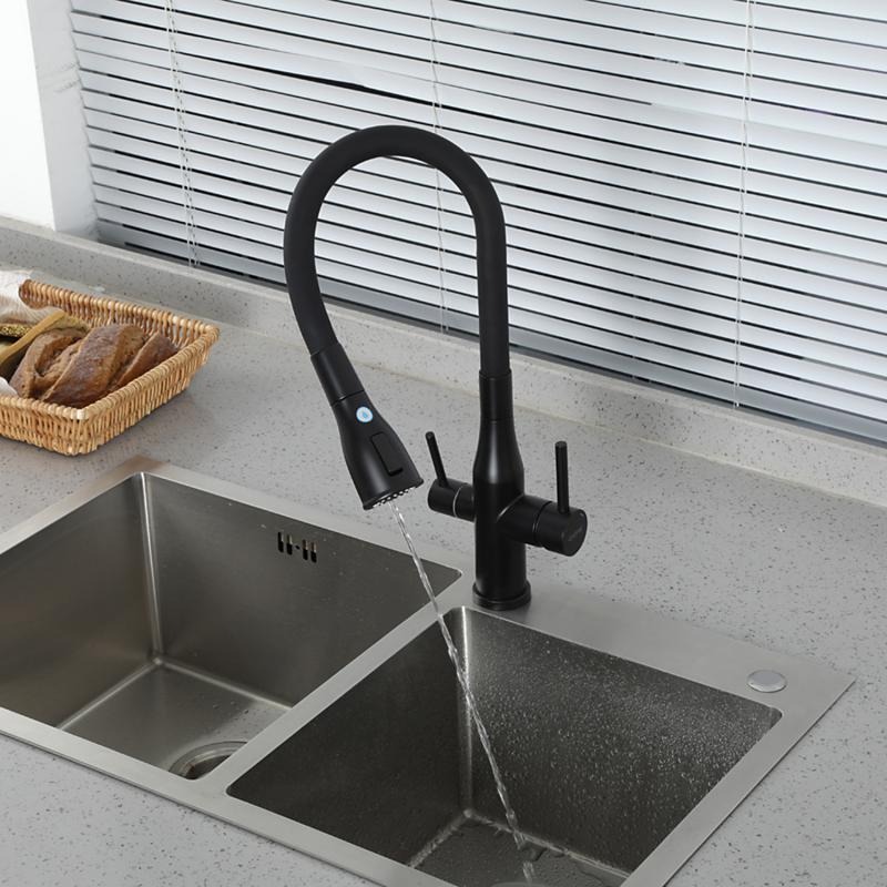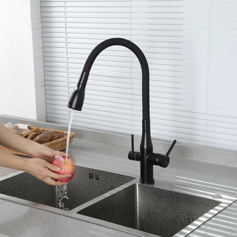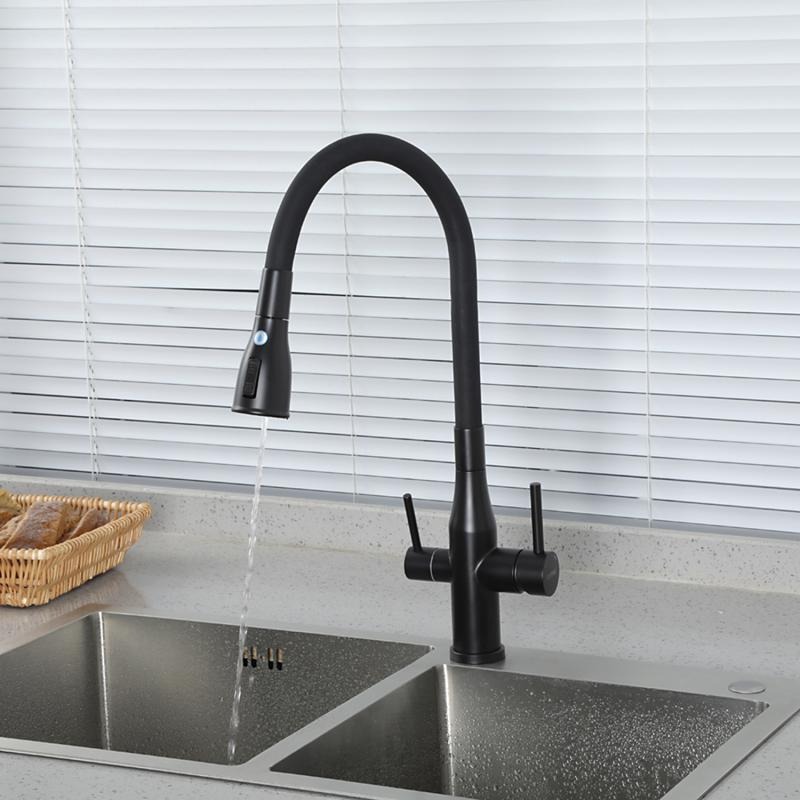 Смеситель для кухни Gappo G4399-66 с гибким изливом и подключением фильтра, материал - латунь, цвет - черный.