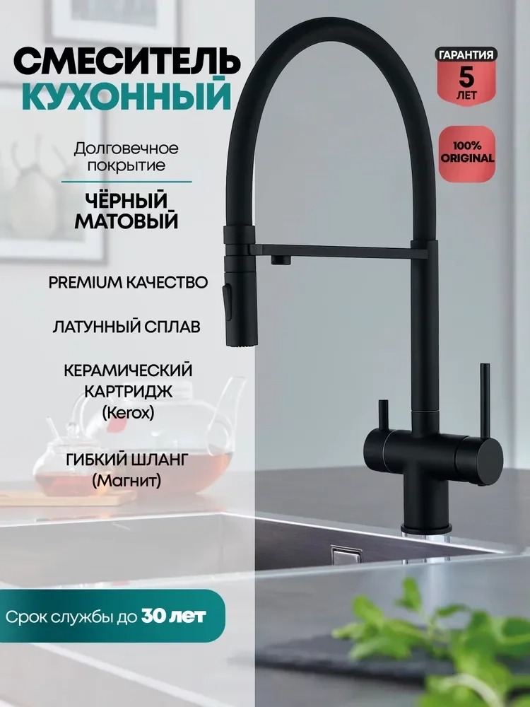 Описание смеситель для кухни с подключением фильтра,смеситель для кухни с гибким изливом Grocenberg GB4096BL