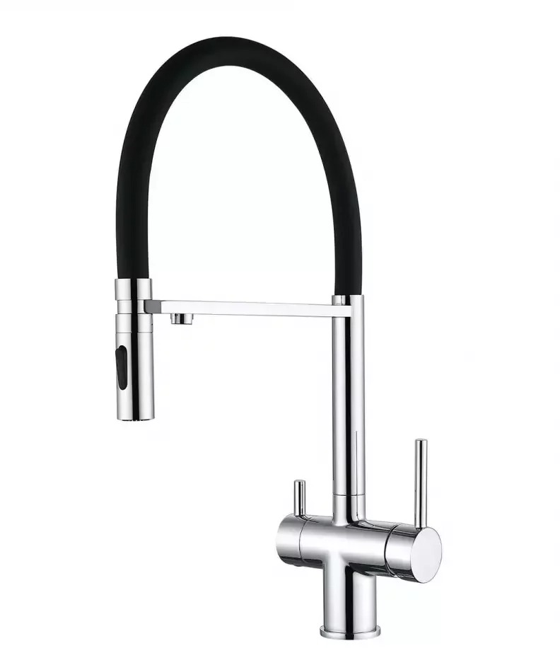 Смеситель для кухни Grocenberg GB4096CR с гибким изливом и подключением к фильтру питьевой воды, материал - латунь, цвет - хром.