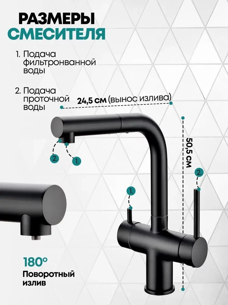 • Смеситель с подключением к фильтру и выдвижным изливом.