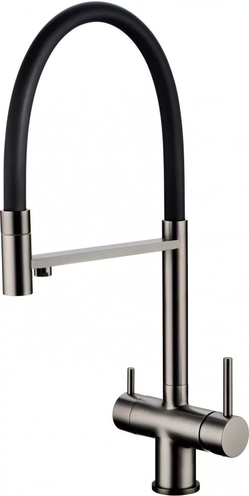 Смеситель для кухни Grocenberg GB4099BG с гибким изливом и подключением к фильтру питьевой воды, материал - латунь, цвет - графит.
