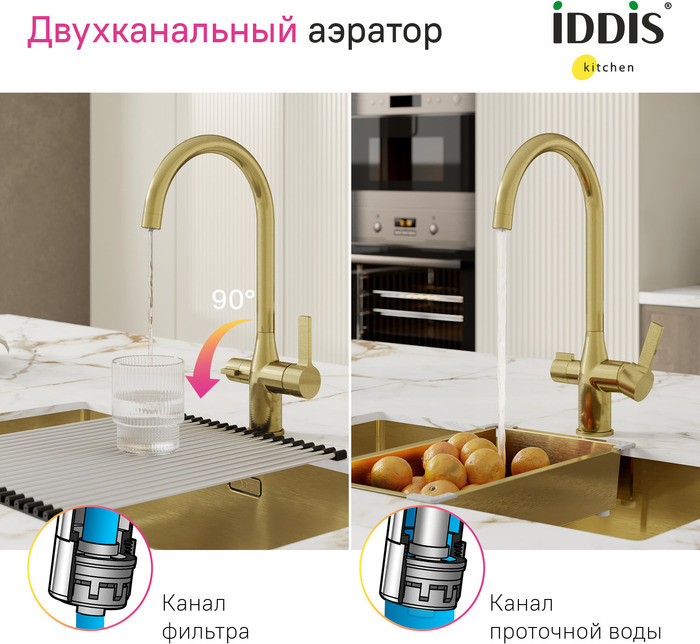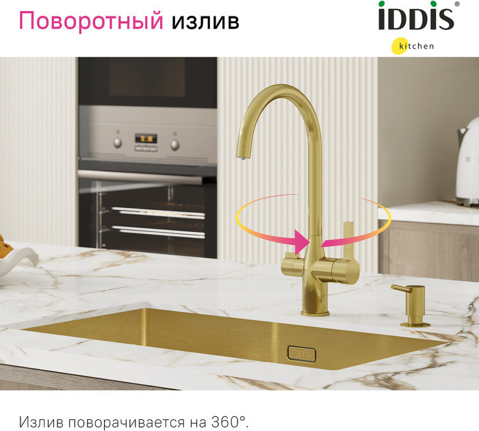 Смеситель для кухни Iddis Pure PURMGFJi05 с подключением фильтра, материал латунь, цвет золото матовое.