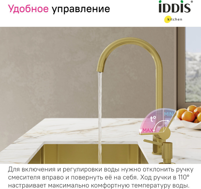 Смеситель для кухни Iddis Pure PURMGFJi05, золото матовое