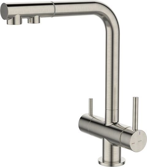 - Смеситель Umbra в сатиновом цвете – стильный дизайн и многофункциональность, необходимая на современной кухне. Удобная эргономичная ручка, питьевая вода из отдельного встроенного канала для фильтрованной воды и выдвижной излив – детали, которые сделают ежедневные хлопоты приятными.