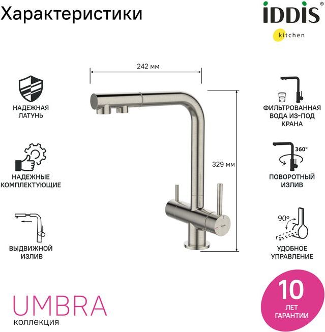 Описание смеситель для кухни с подключением фильтра,смеситель для кухни с выдвижным изливом Iddis UMBBNPFi05