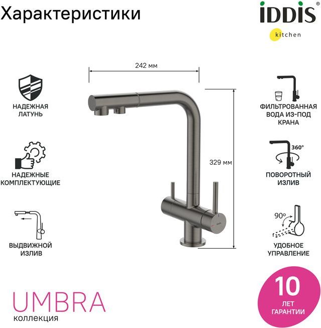 Описание смеситель для кухни с подключением фильтра,смеситель для кухни с выдвижным изливом Iddis UMBGMPFi05