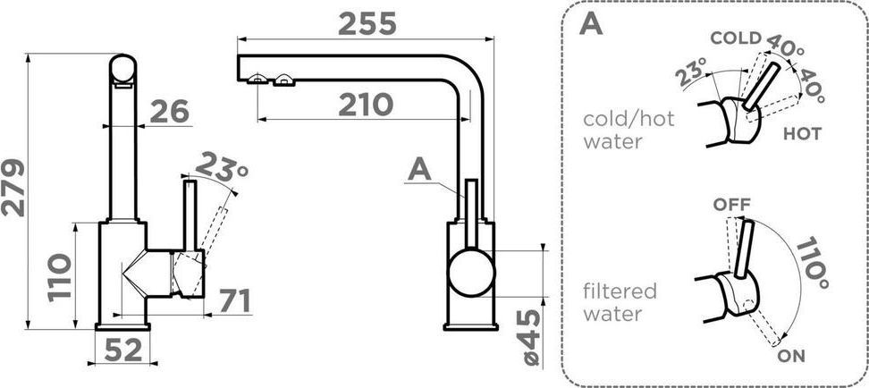 • Новая удобная технология системы ручки "2 в 1 Multi" - позволяет переключить с водопроводной на фильтрованную воду в одно касание;