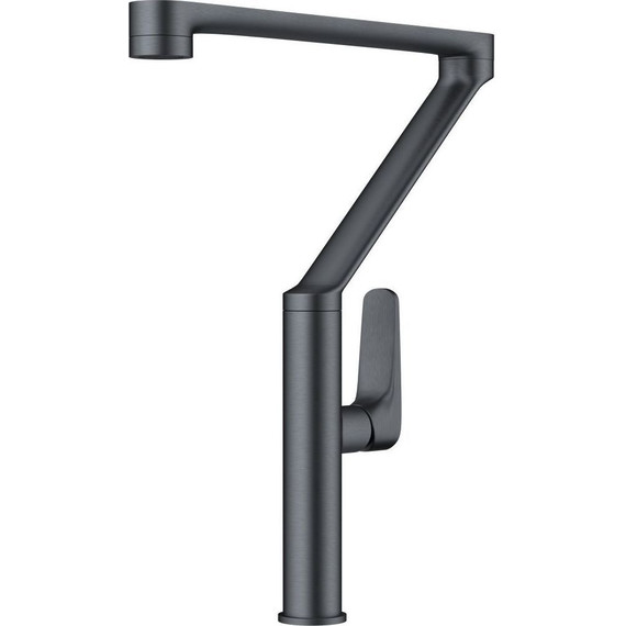 - Высокий поворотный излив и четкие прямые линии