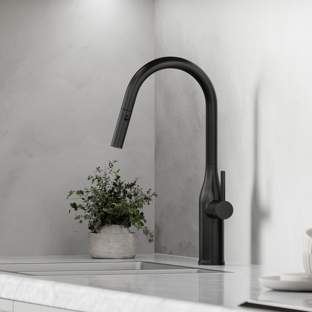 Смеситель для кухни Sancos Grand SC4002MB с выдвижным изливом, материал латунь, цвет чёрный матовый.