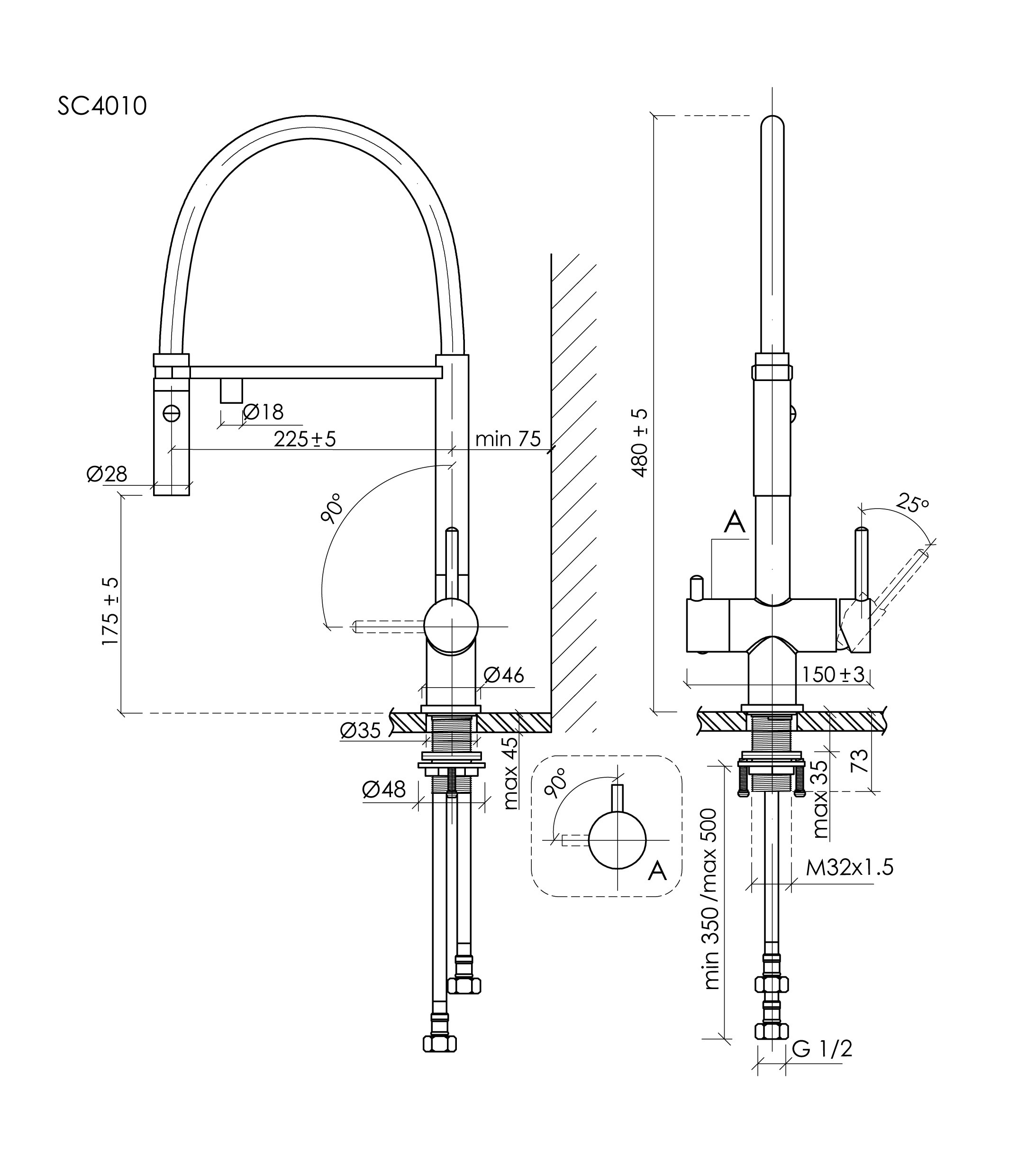 - Вращение излива на 360°