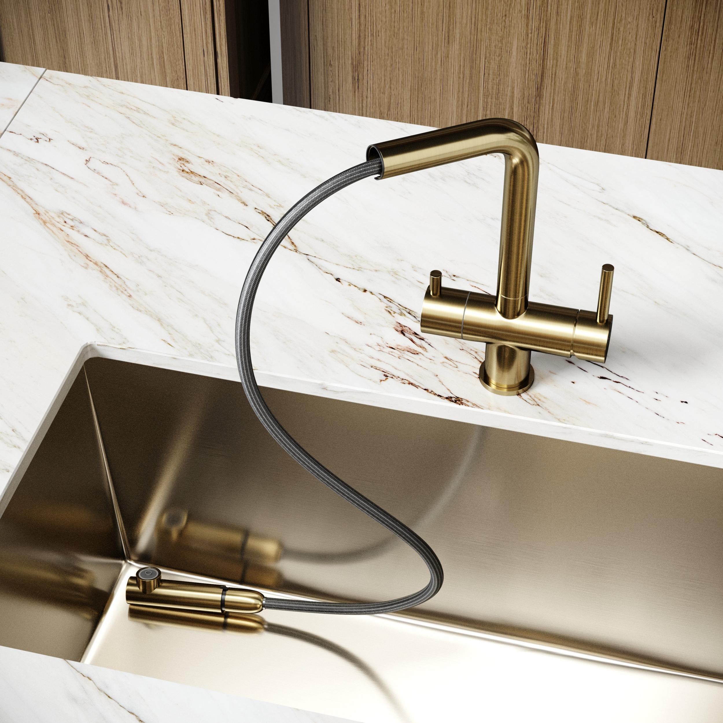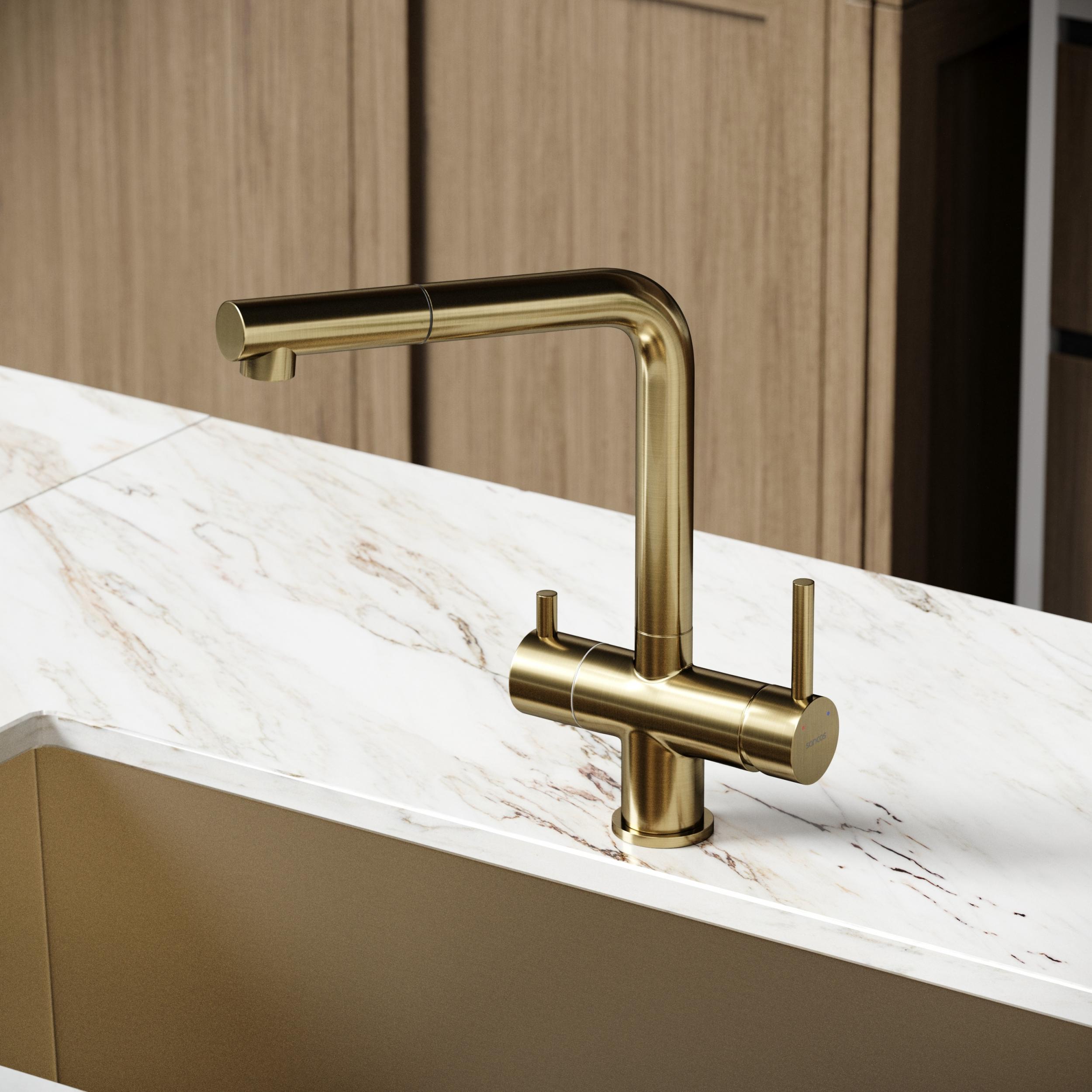 Смеситель для кухни Sancos Spin SC4015BG, брашированное золото