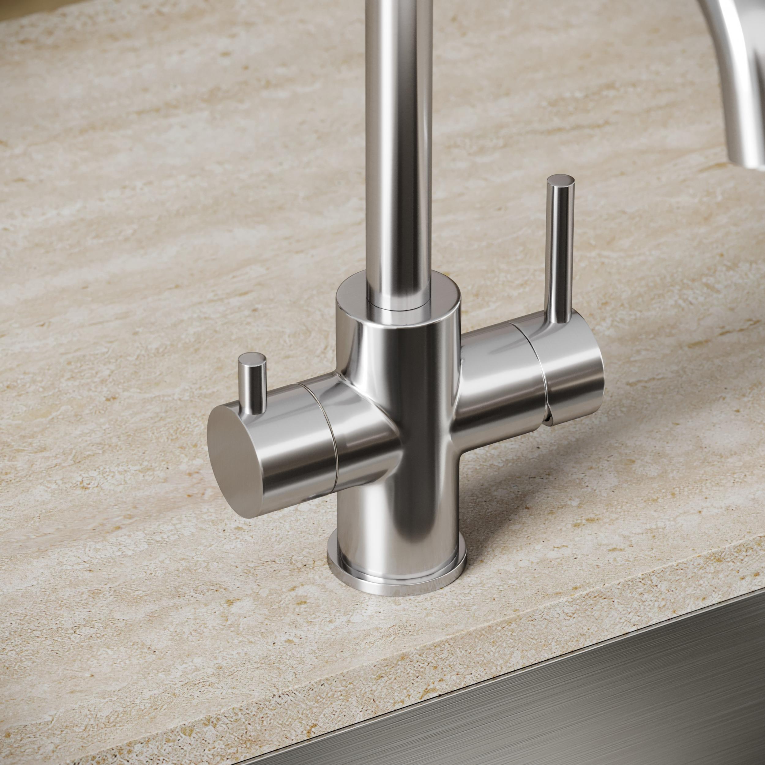 Смеситель для кухни Sancos Vela SC4013BN с поворотным изливом и подключением фильтра питьевой воды, материал - латунь, цвет - брашированный никель.