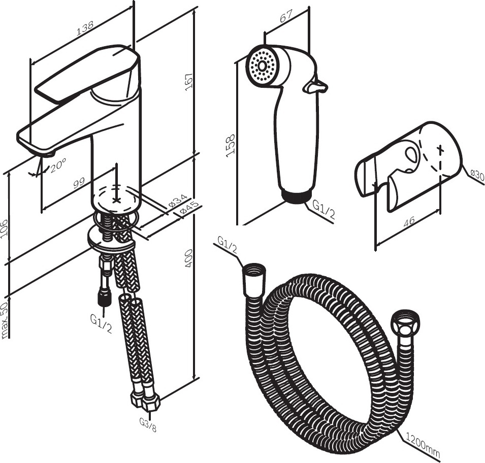 Описание смеситель для раковины с гигиеническим душем AM.PM F90A03022