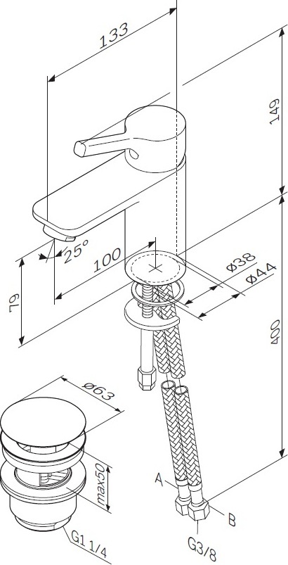 Смеситель для раковины Am.Pm X-Joy S F85B82100 с донным клапаном, материал латунь, цвет хром.