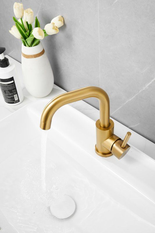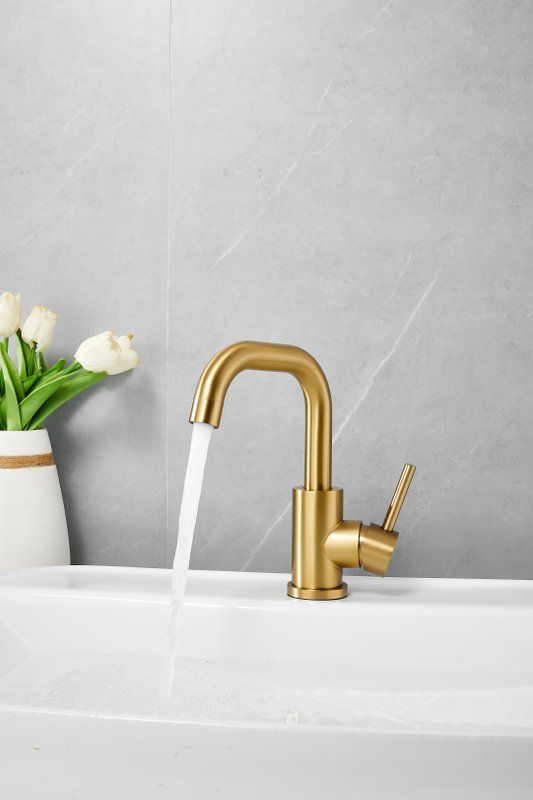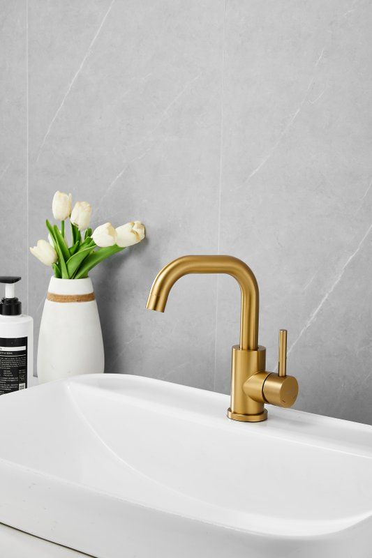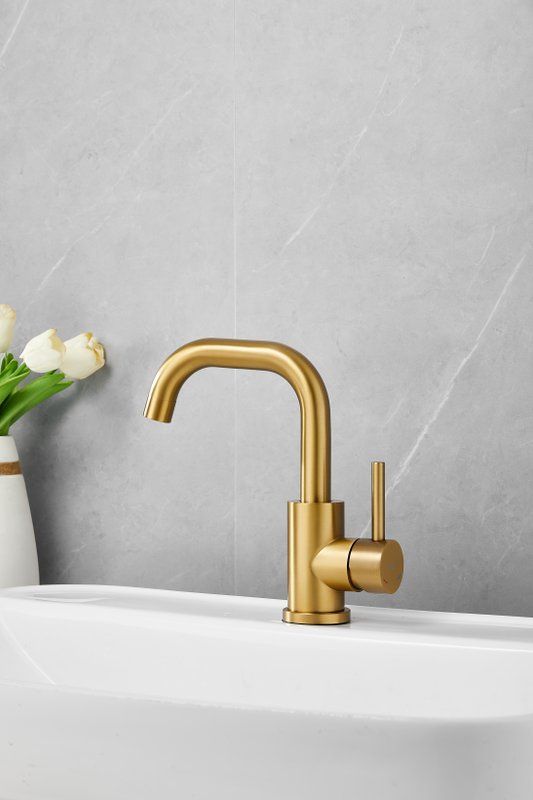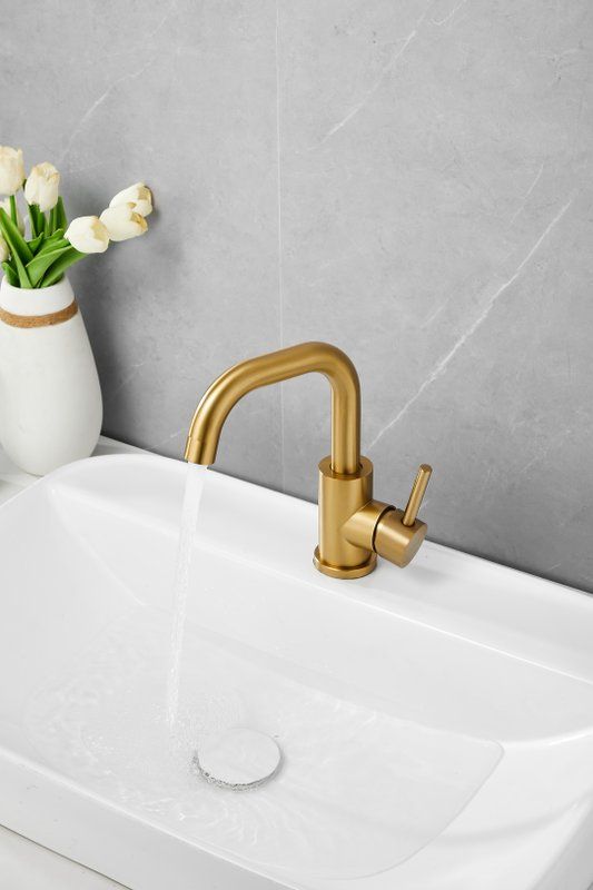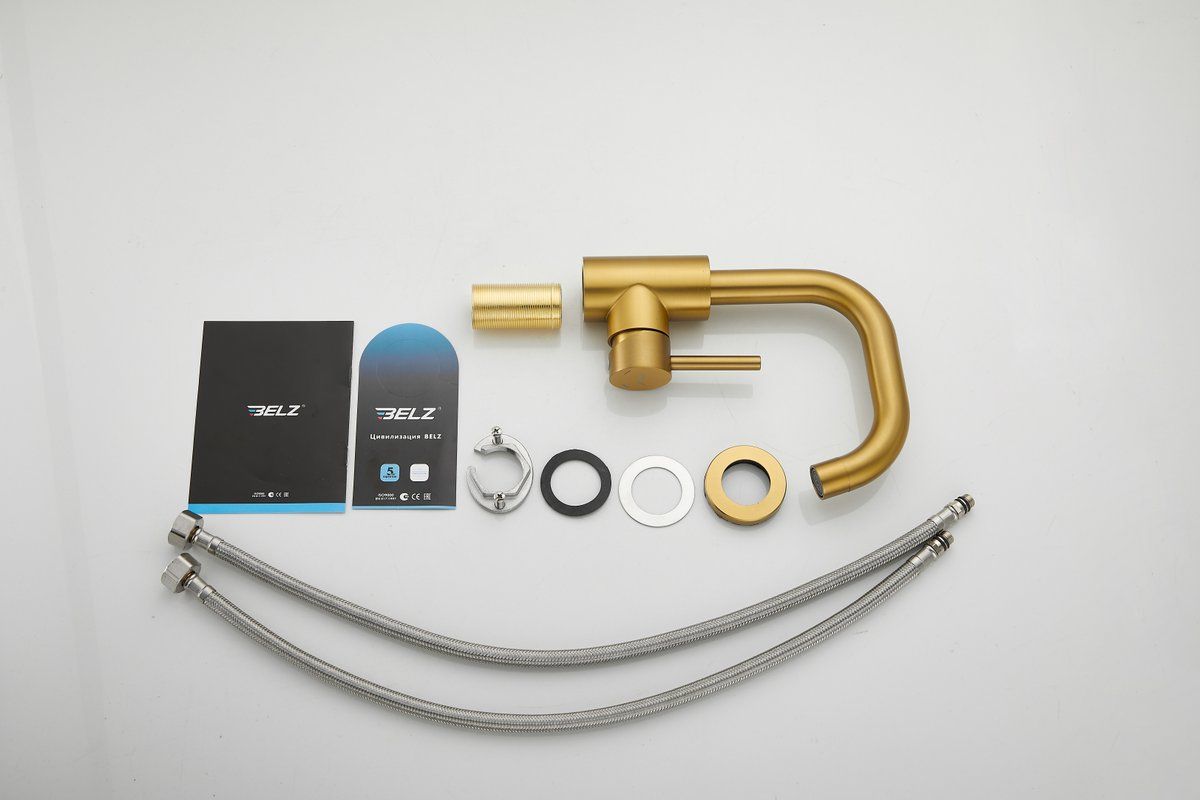 Смеситель для раковины Belz B10810-5, материал нержавеющая сталь, цвет золото.