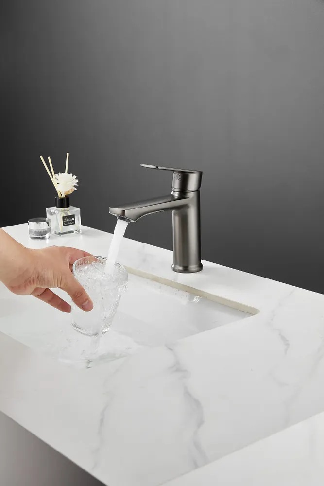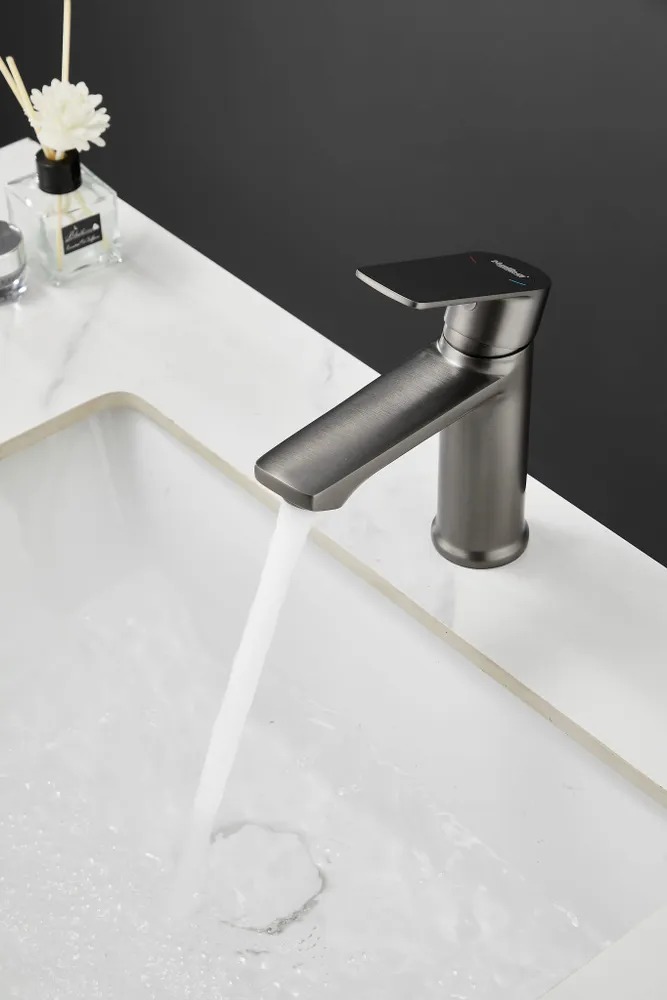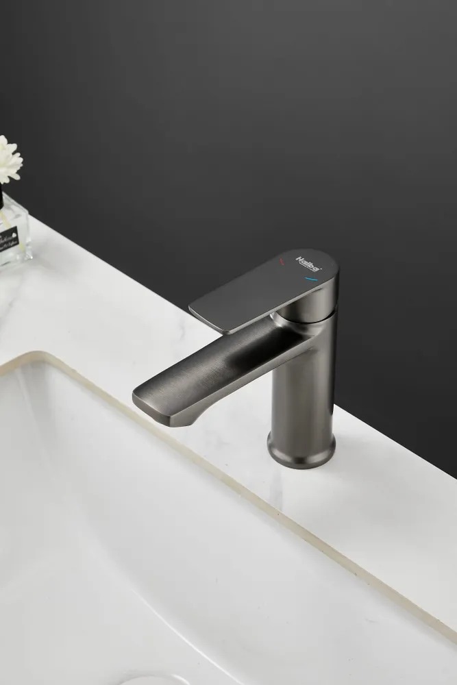 Смеситель для раковины Haiba HB10726-3, материал латунь, цвет графит "оружейная сталь".