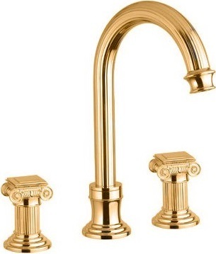 Смеситель для раковины Cezares OLIMP-BLS2-A-03/24-O с донным клапаном, на 3 отверстия, ручки - металл, материал - латунь, цвет - золото 24 карат.