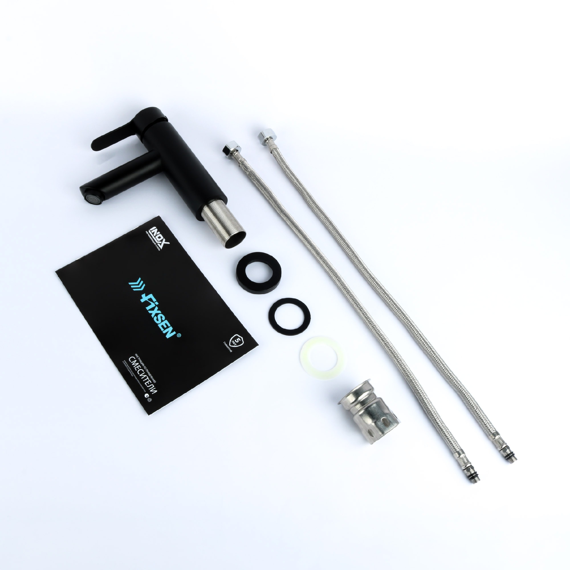 Смеситель для раковины Fixsen NORDIC FX-8806B, материал - нержавеющая сталь, цвет - чёрный.