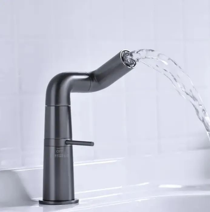 Смеситель для раковины Haiba HB10813-3 с поворотным изливом, материал латунь, цвет графит.