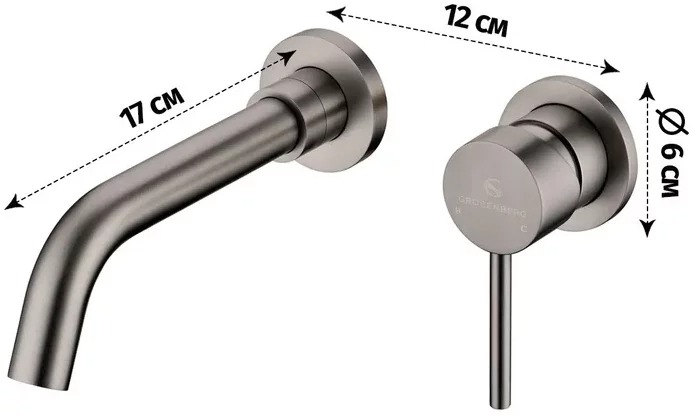 Смеситель для раковины настенный Grocenberg GB511BG со скрытой частью, материал латунь, цвет графит.
