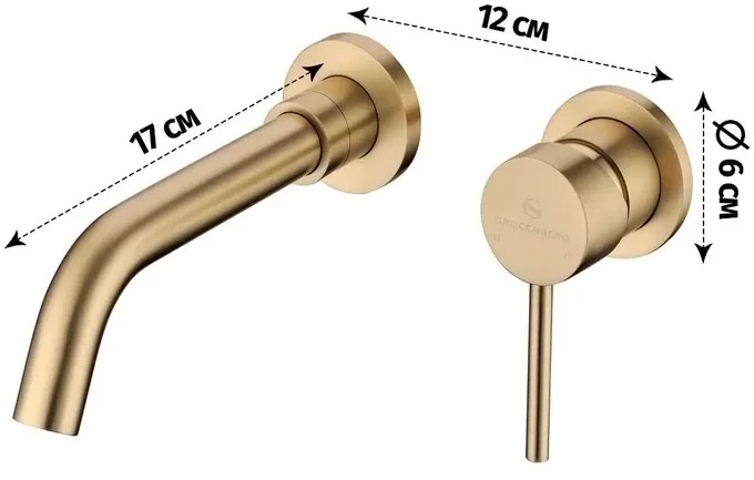 Смеситель для раковины настенный Grocenberg GB511MG со скрытой частью, материал латунь, цвет матовое золото.