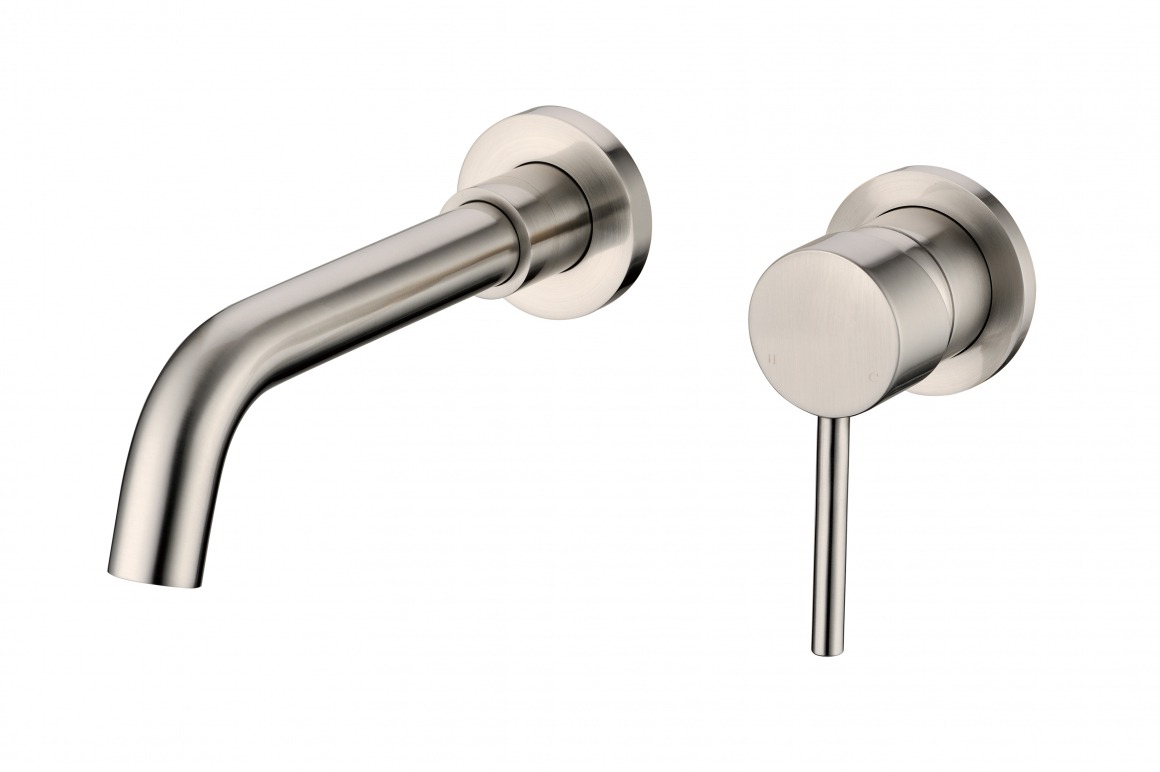Смеситель для раковины настенный Grocenberg GB511NK со скрытой частью, материал латунь, цвет никель.