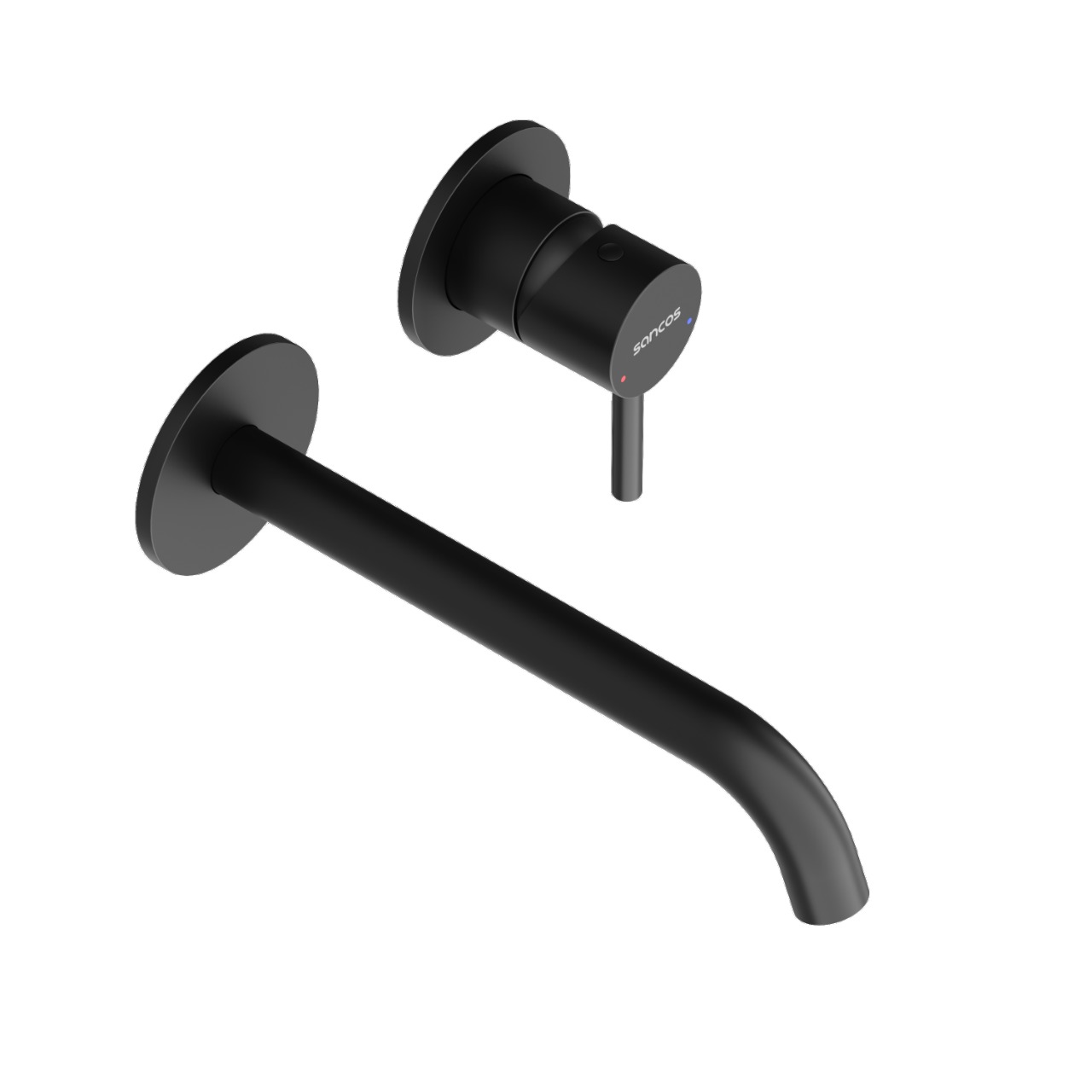 Смеситель для раковины настенный Sancos Etna SC9004MB, чёрный матовый (со скрытой частью)