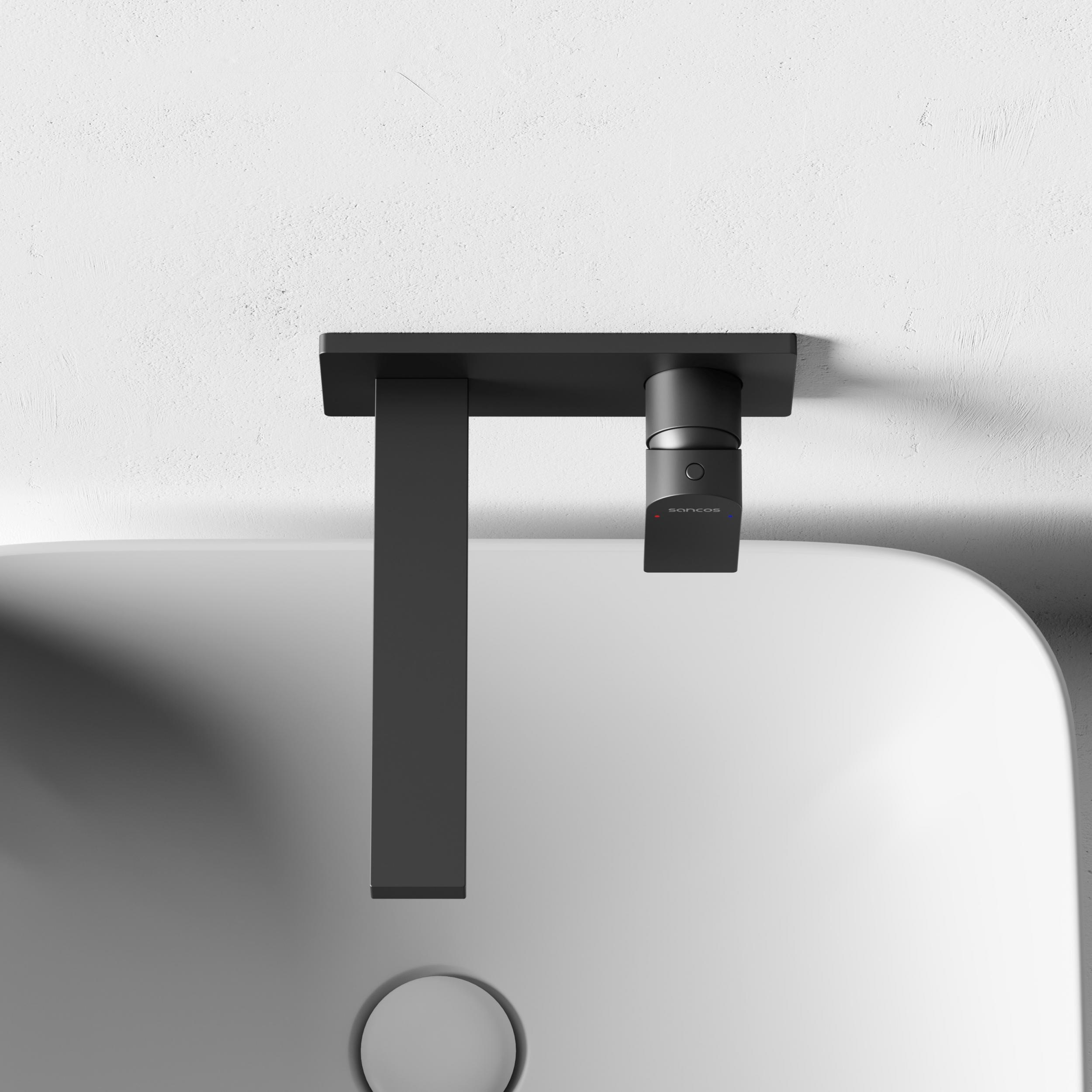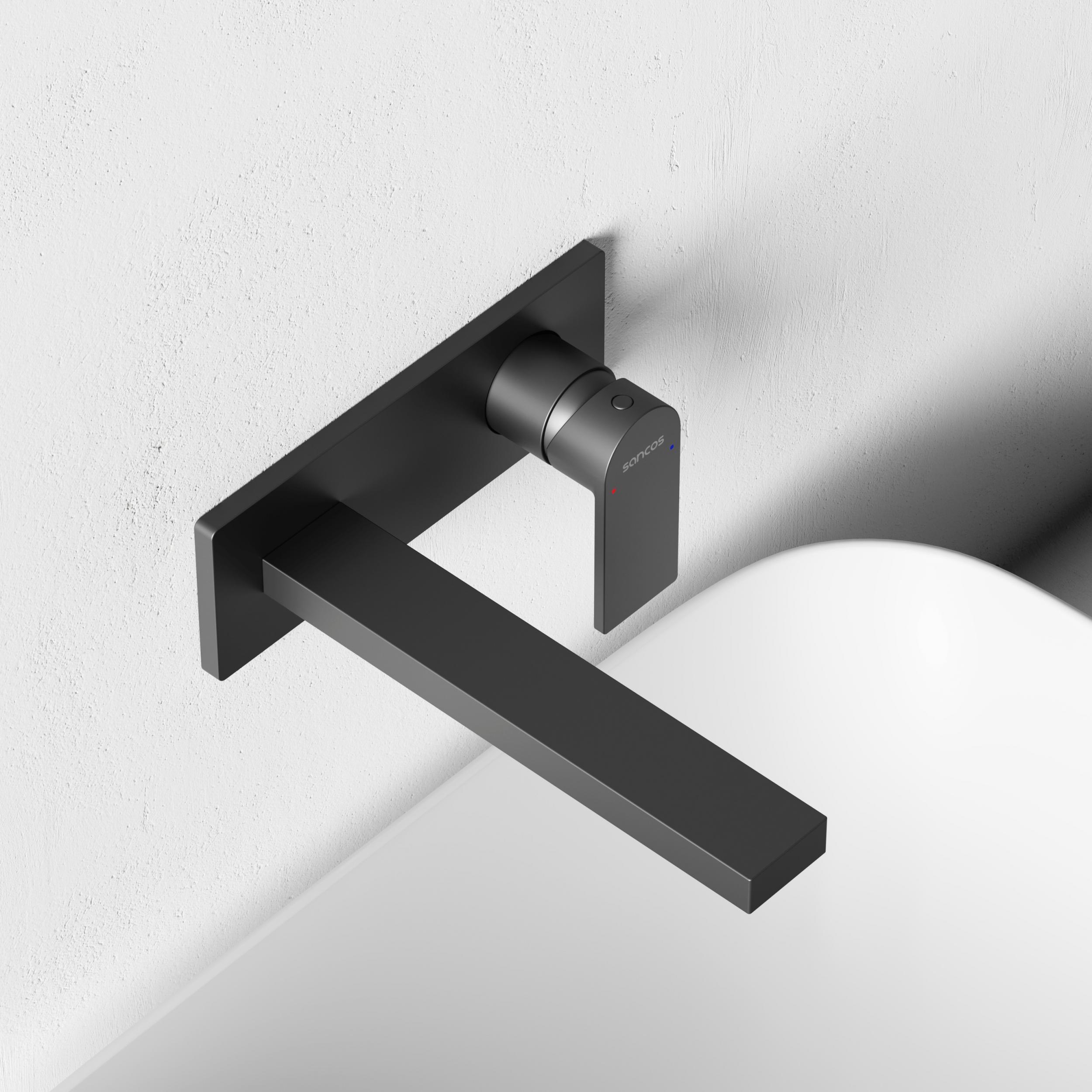 Смеситель для раковины настенный Sancos Studio SC9017MB, чёрный матовый (со скрытой частью)