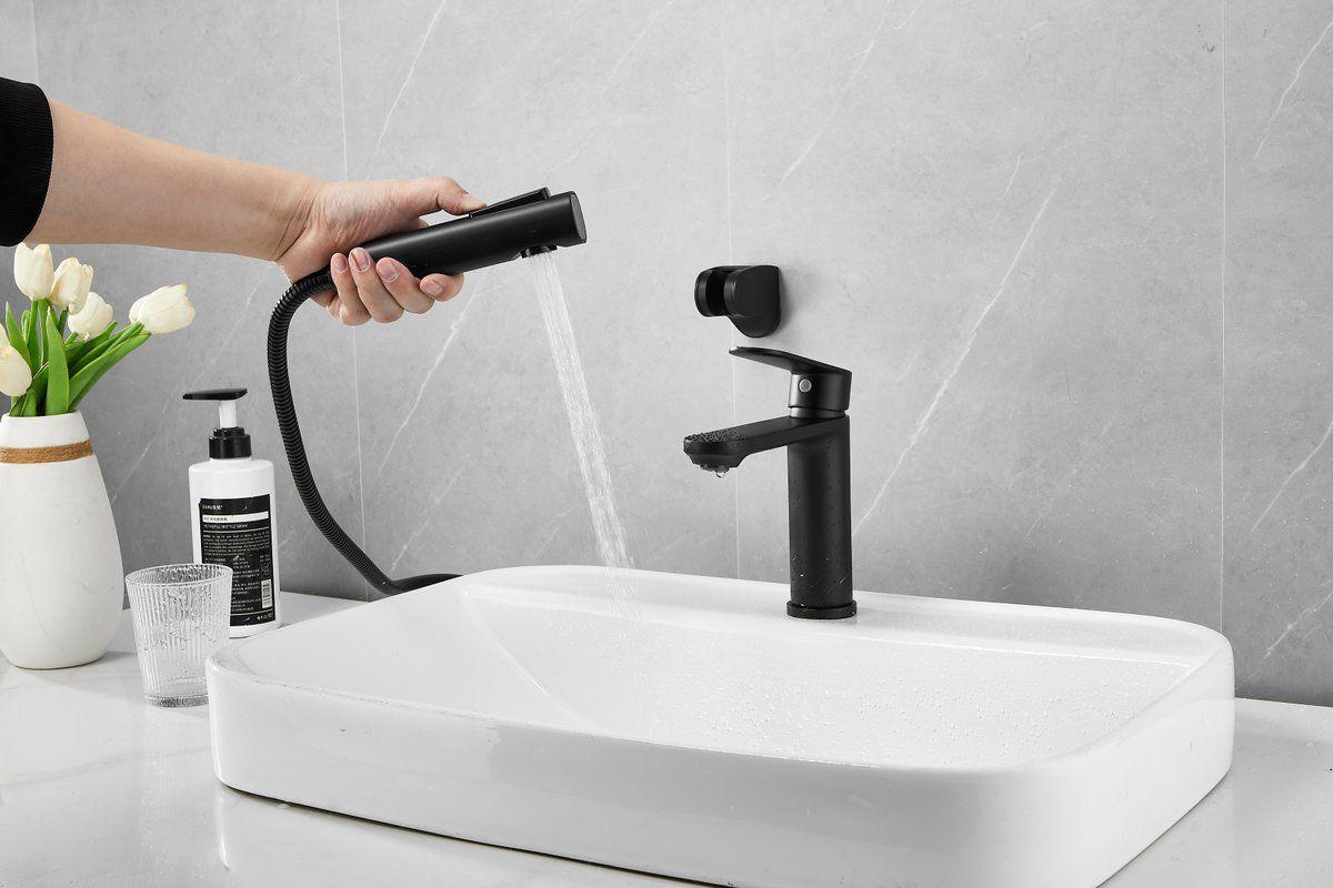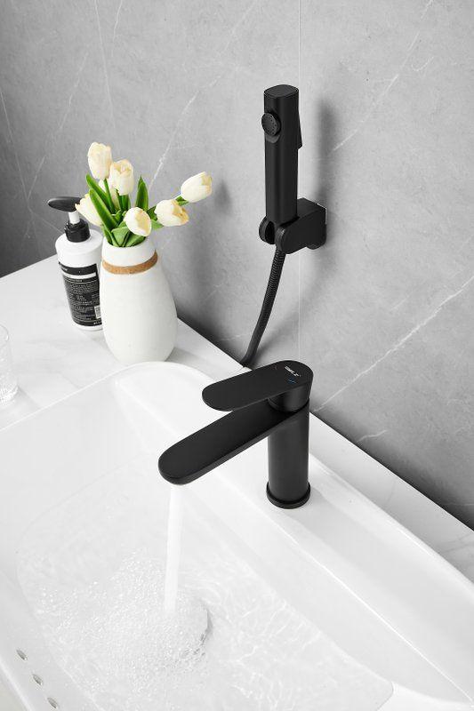 Смеситель для раковины с лейкой для биде Belz B12713-7, чёрный