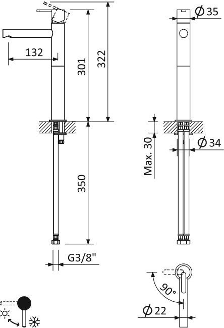- Длина излива: 10,8 см