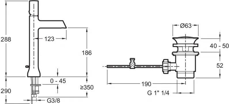 - Высота излива: 18.6 см