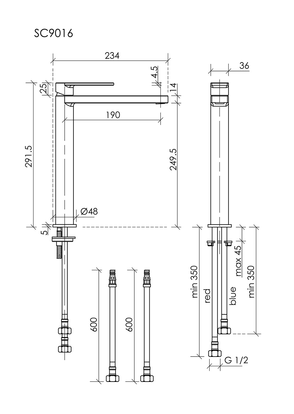 Описание смеситель для раковины высокий Sancos SC9016BG