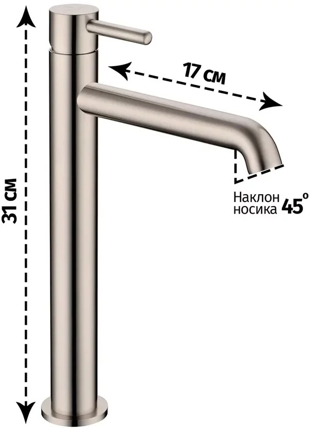 - Высота смесителя - 31 см.
