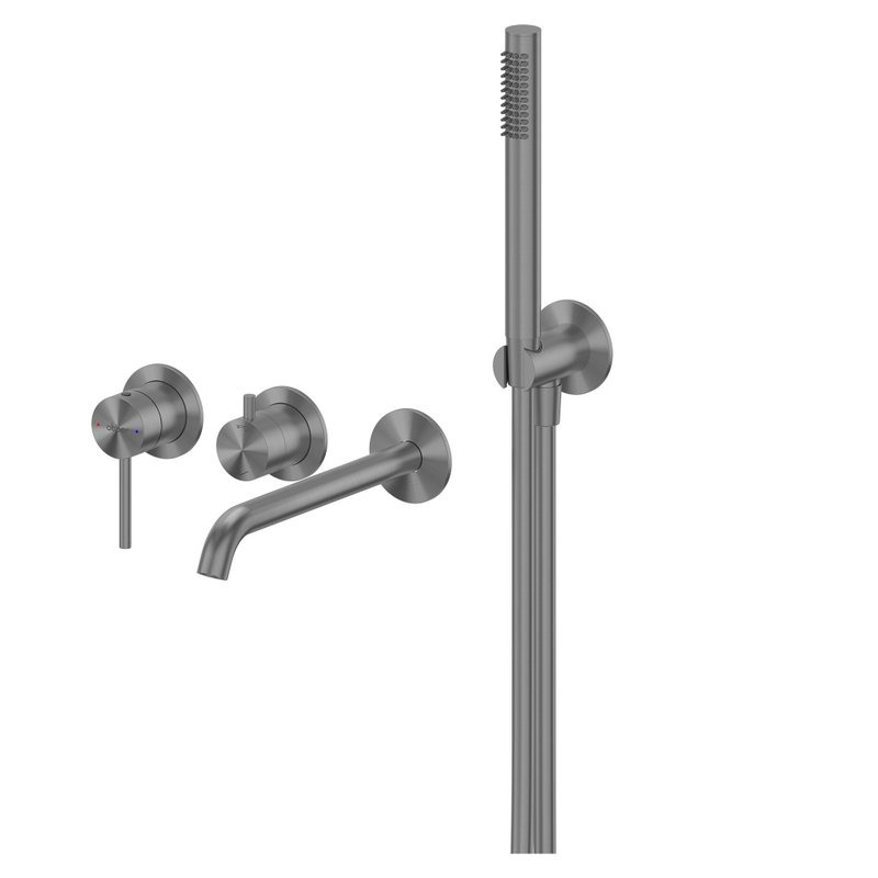 Смеситель для ванны Abber Wasser Kreis 316 AF8130BGG с душевым гарнитуром и скрытой частью в комплекте, материал нержавеющая сталь, цвет оружейная сталь брашированная.