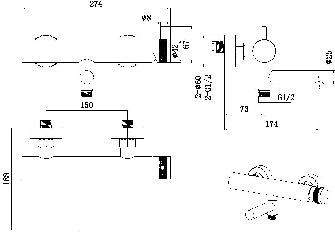 смеситель для ванны без гарнитура
