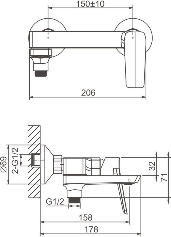 Смеситель для ванны Belz B60715-3, оружейная сталь
