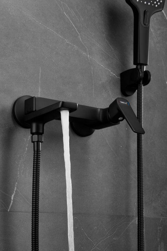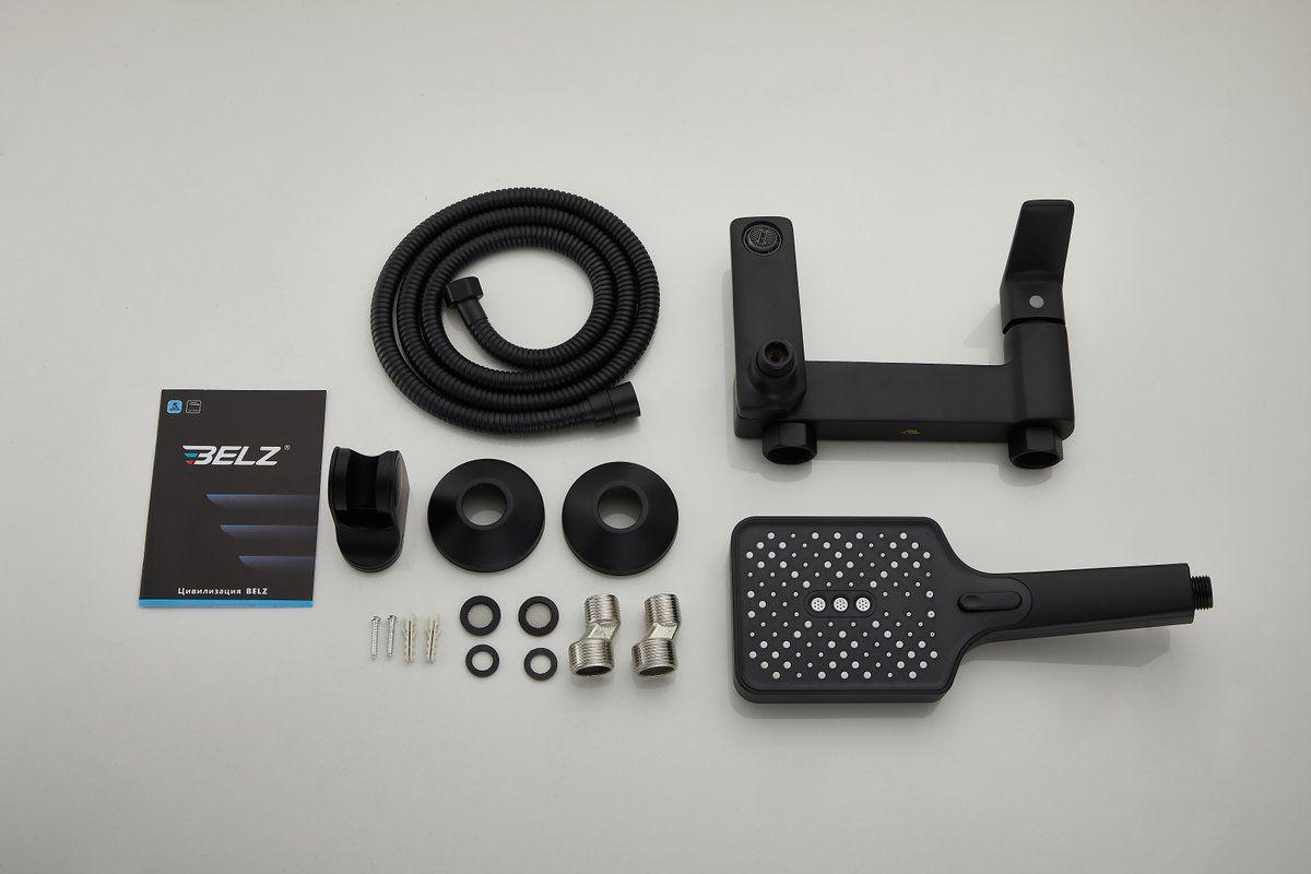 Смеситель для ванны Belz B60715-7 с душевым гарнитуром, материал латунь, цвет чёрный.