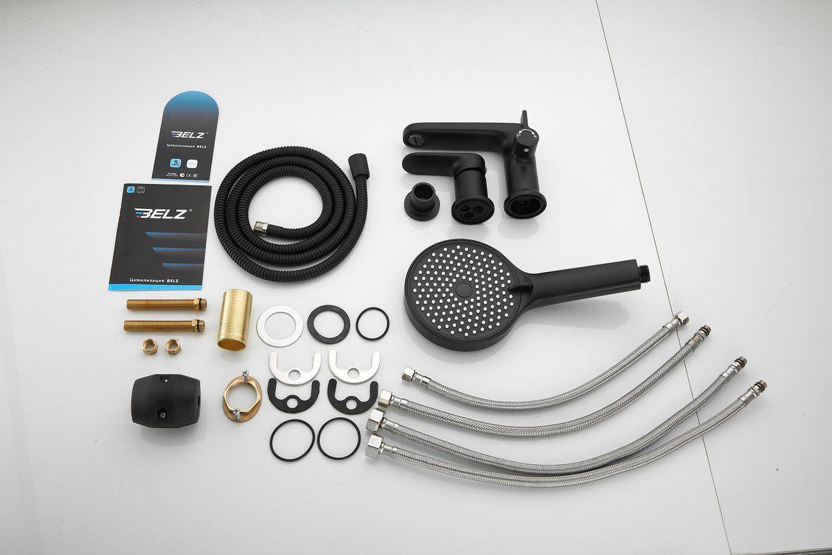 Смеситель для ванны Belz B66713-7 с душевым гарнитуром, материал латунь, цвет чёрный.