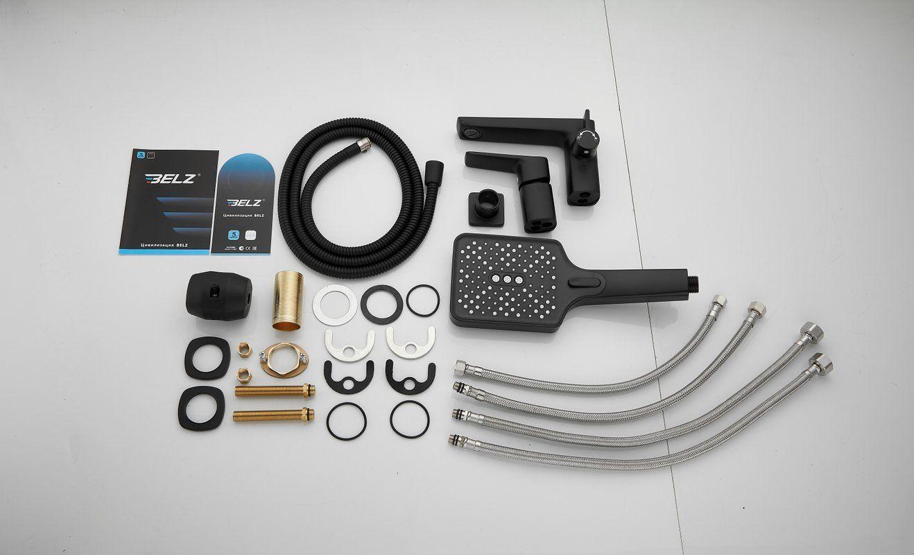 Смеситель для ванны Belz B66715-7 с душевым гарнитуром, материал латунь, цвет чёрный.